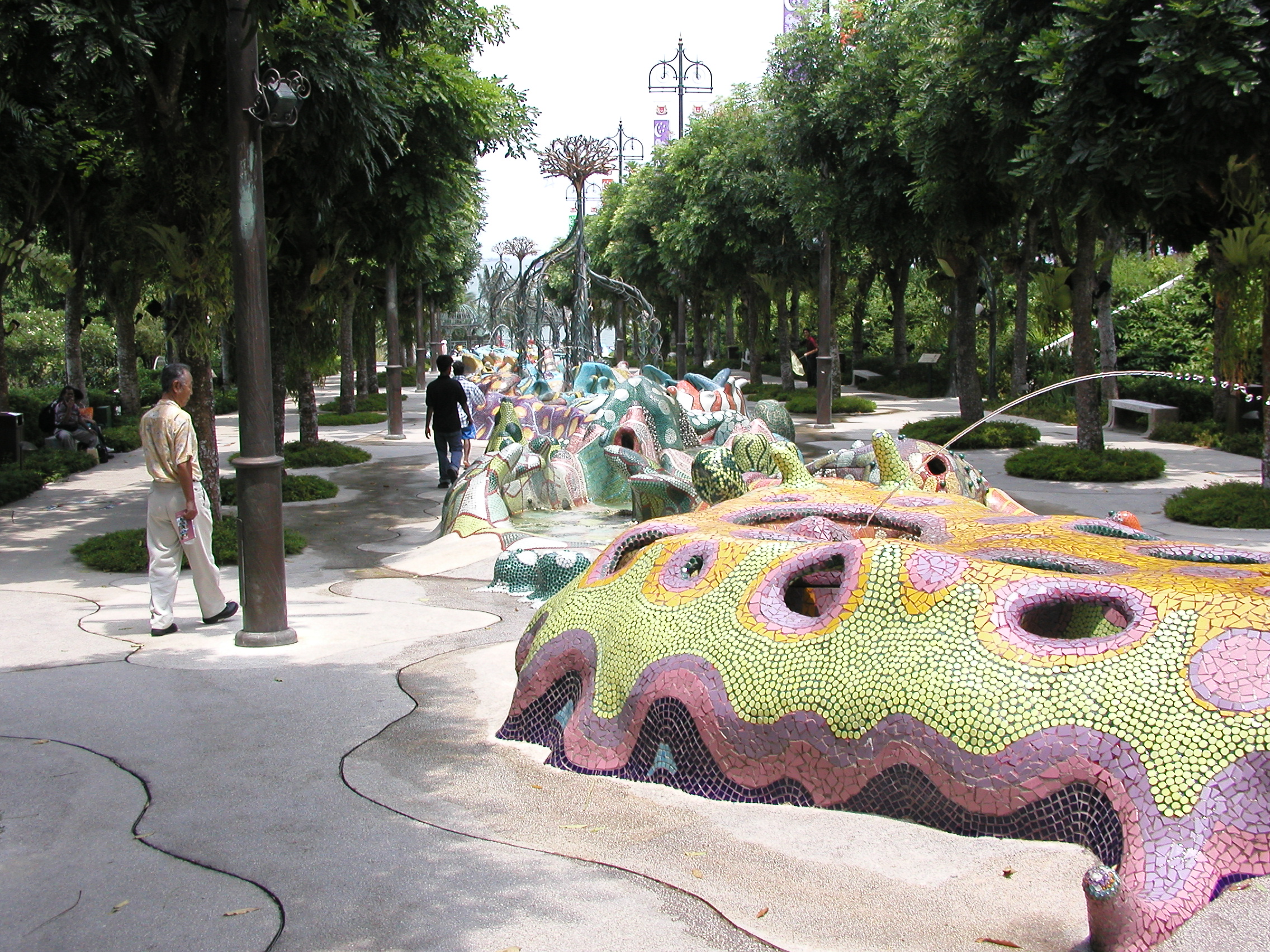 1回目は昨年2001年8月、赴任して間もない頃、まだ単身赴任時代に夏休みを利用して家族を日本より呼び寄せた時。2回目は今年2002年8月、日本より娘の友達が遊びに来たときです。セントーサ島はシンガポールでは代表的な観光地であり、いつも観光客で混雑しています。
