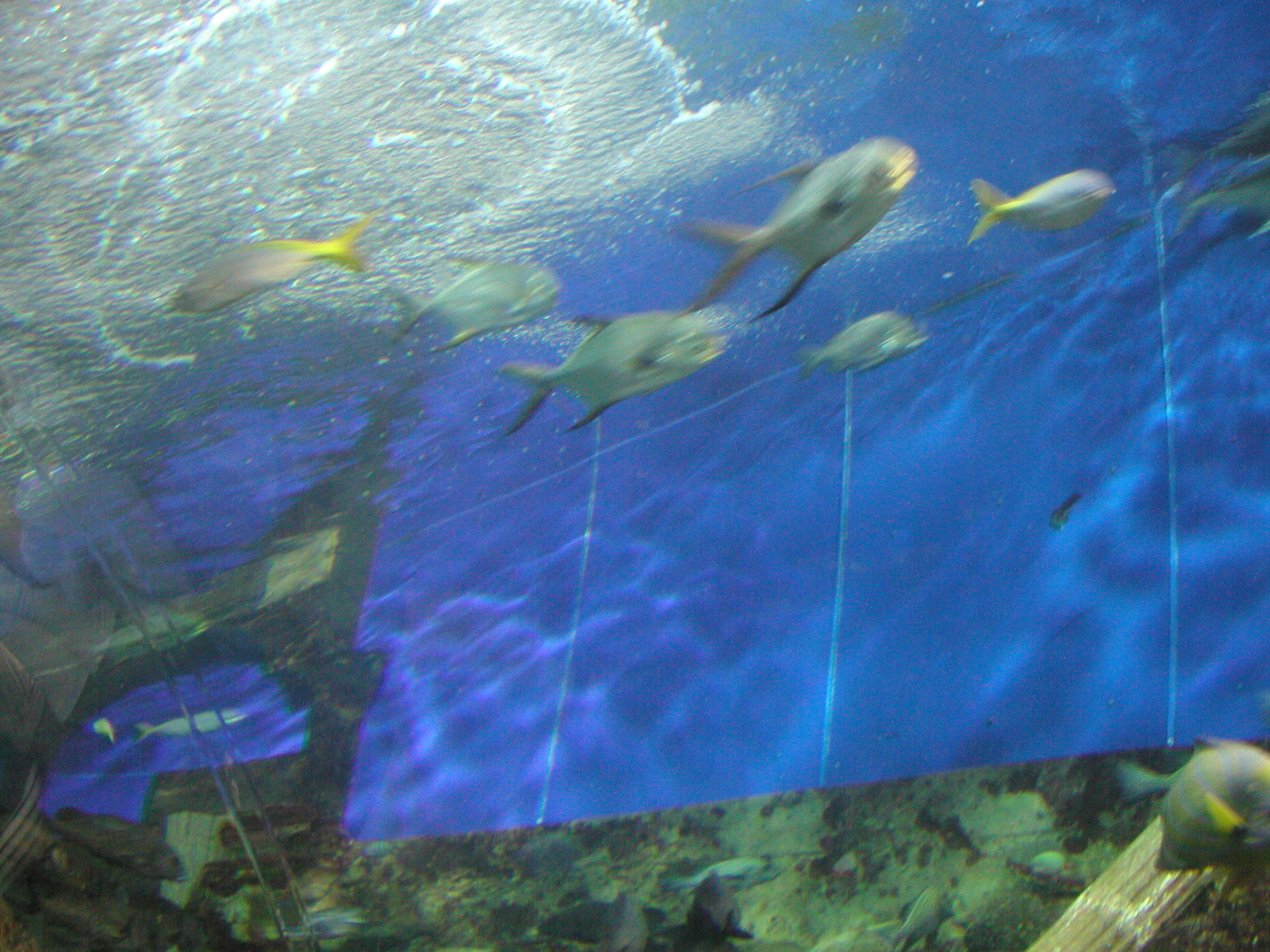 作りは海底に2メートル幅くらいの透明のトンネルを通しており、そこにゆっくり動く歩道がありますのでそこに立って見ることが出来ます。そこには無数の魚が泳いでいます。小さな魚の群れや大きなエイなどの魚もおり、ゆっくり楽しむことが出来ます。出口の方にはジュゴンもいたりします。