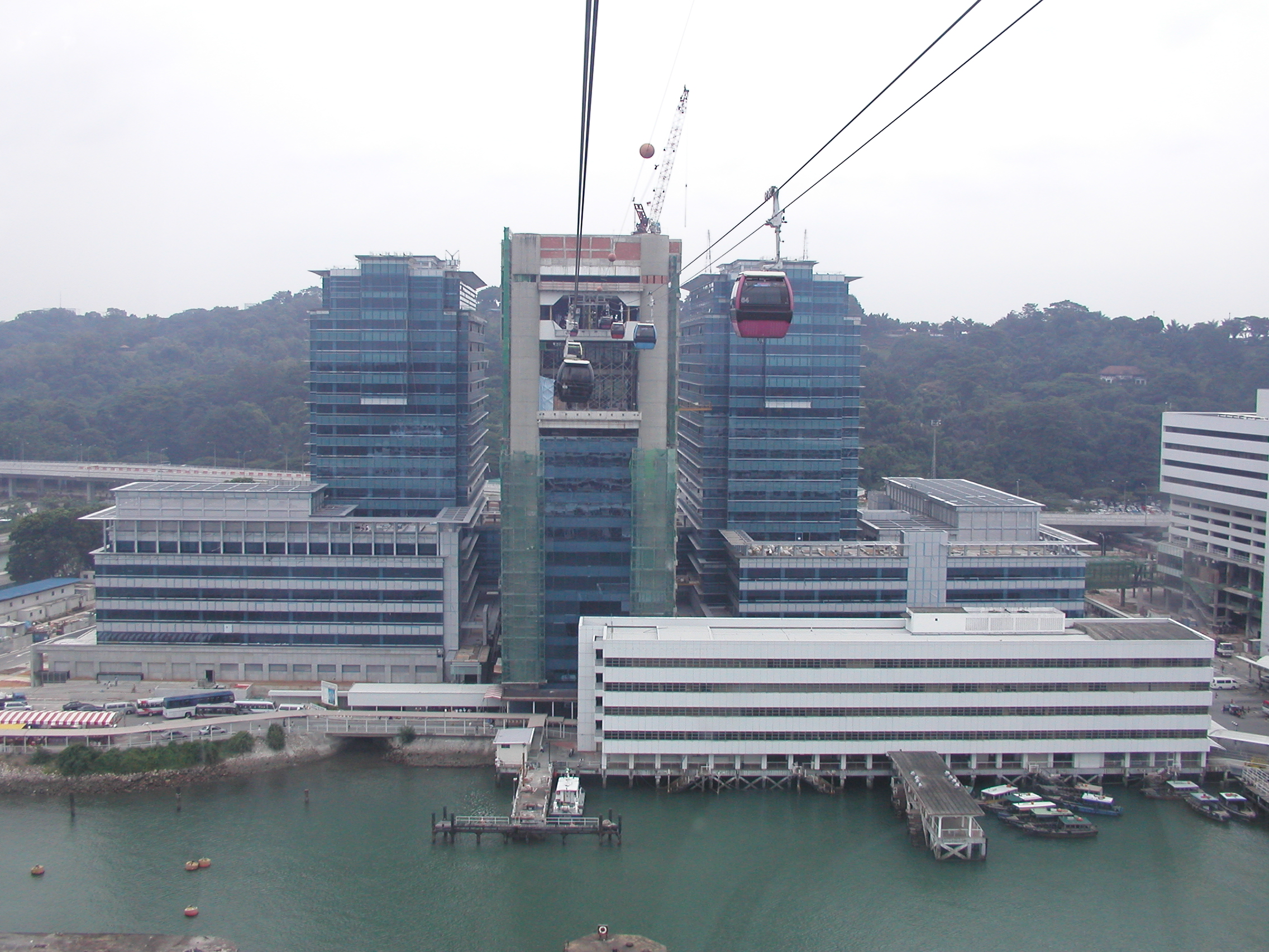 WTCの敷地内に15階建てくらいの大きなビルがあり、その最上階より出ています。入場券(島に入るのに入島料を取られます)とロープウエイのチケット売り場が下にありますのでそこで購入します。その時にパックで海底水族館や博物館などのチケットも売っていますので、必要に応じ同時に購入すればよいでしょう。