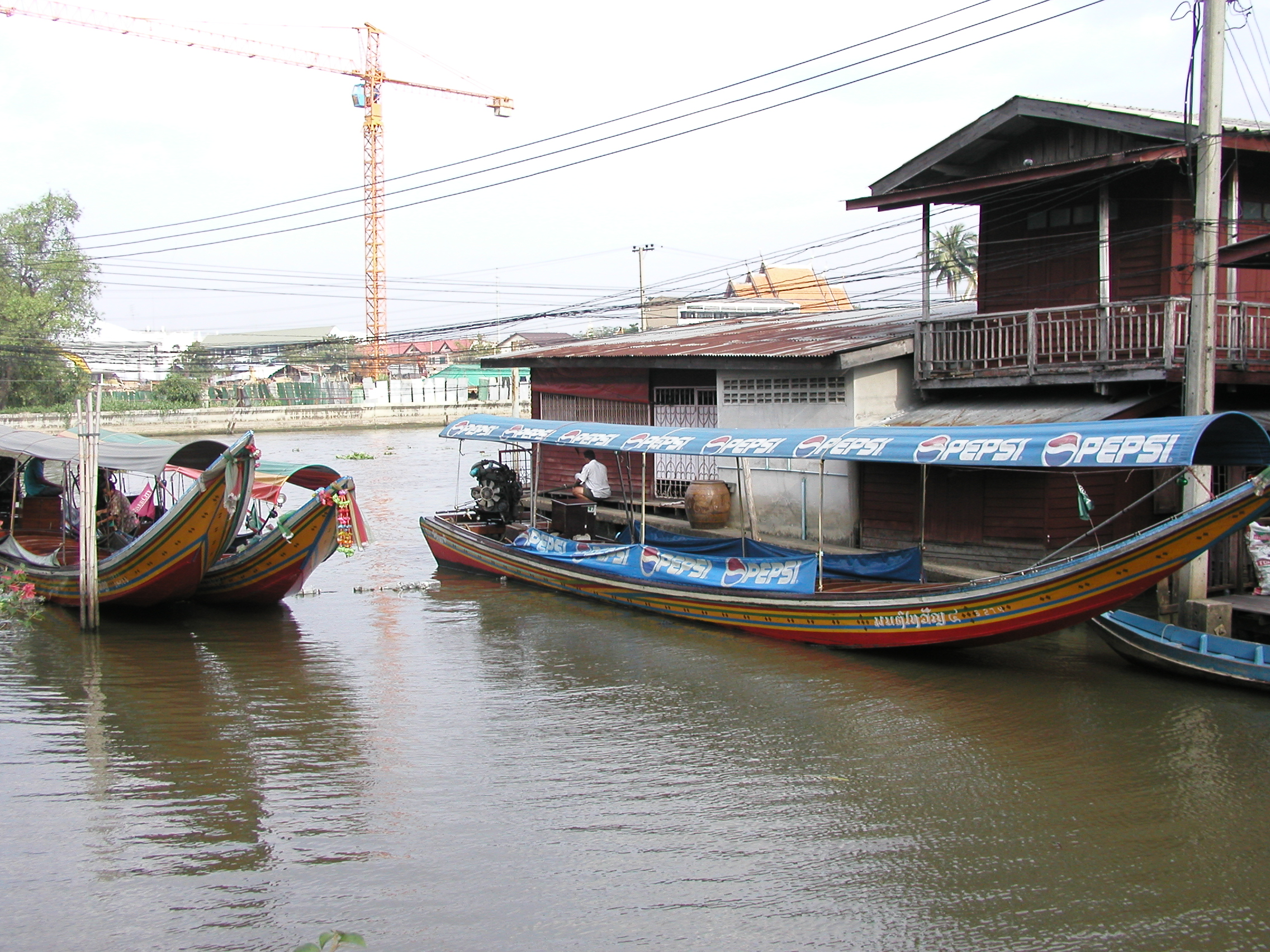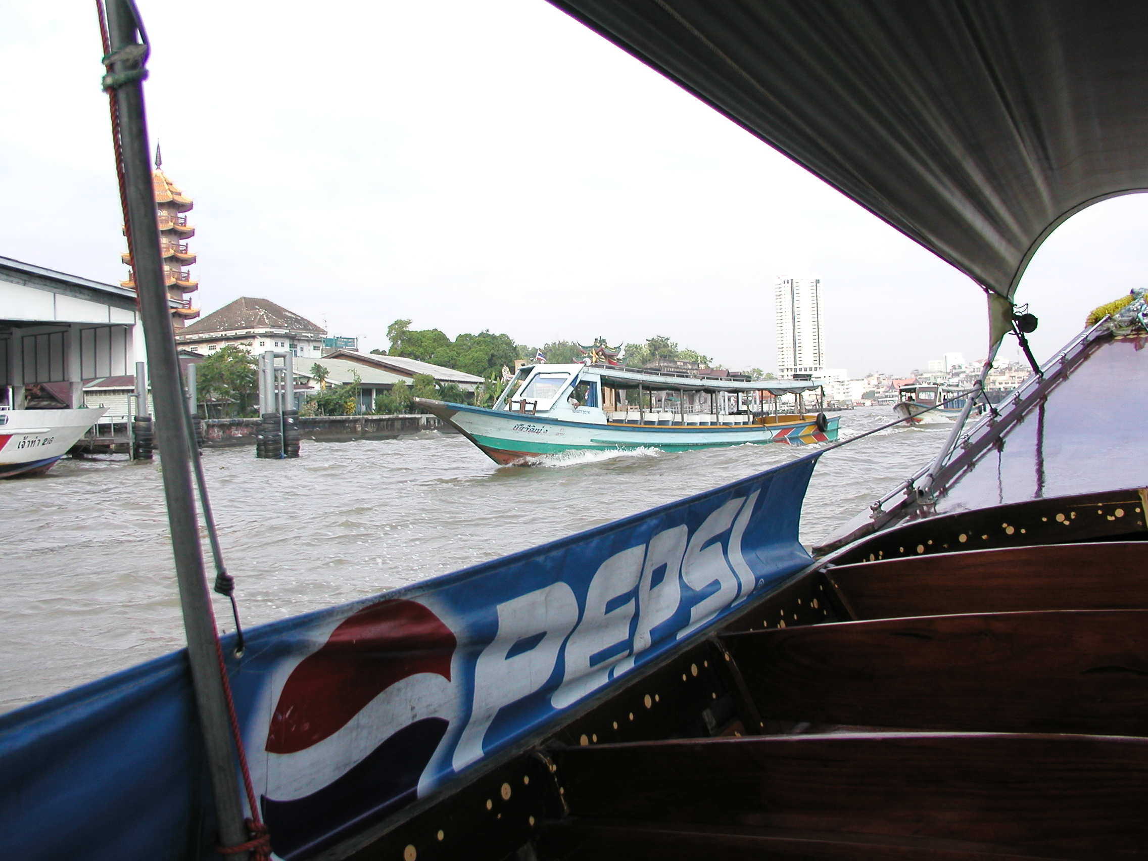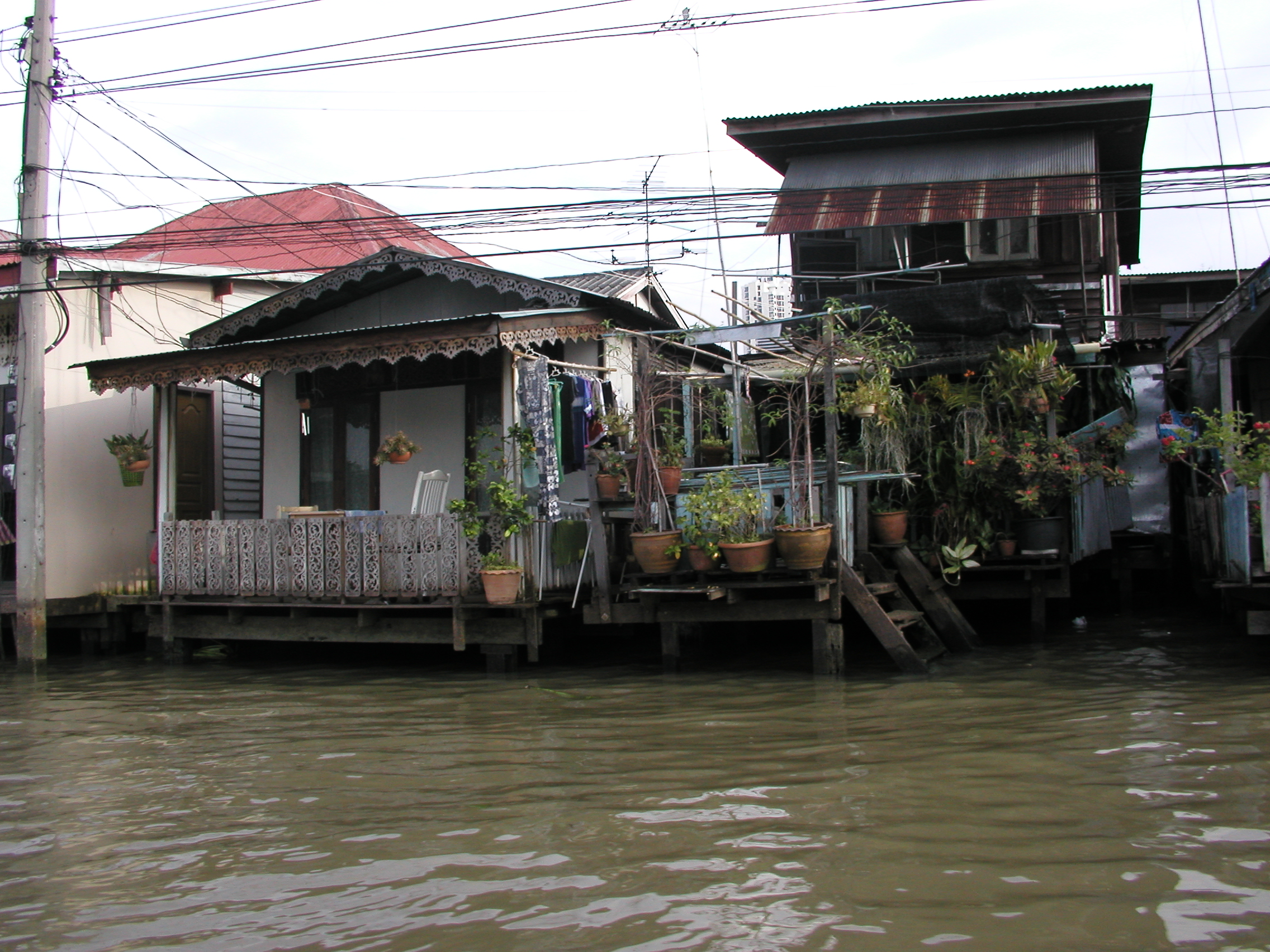 川の両側には多くの寺院があります。皆伝統ある綺麗な寺院なので、私は1人、写真をとりまくっていました。このチャオプラヤ川はかなり幅の広い大きな川です。良く見ると寺院のみでなく川の両側に古い家が突き出して建っています。聞いたら実際に人が生活しているみたいで、川の上のテラスで洗濯物を干したりしていました。