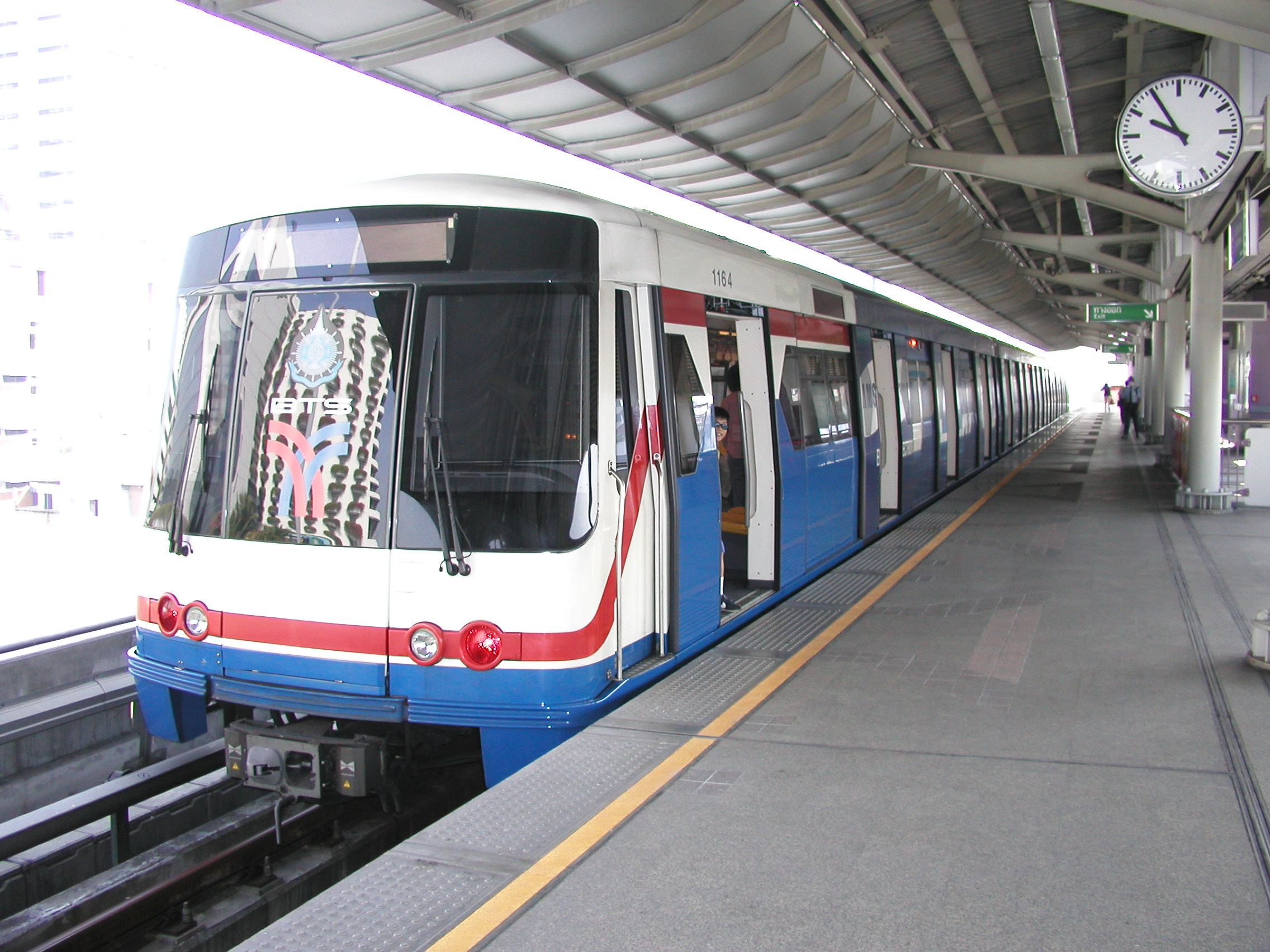 さてバンコクの街中の移動はタクシーを使うと何となく危険だし常に渋滞しており時間がかかるので、最近出来た便利な「スカイトレイン(BTS)」を使うといいでしょう。これは市街地中心部の高架橋を走る電車で現在は南北、東西と2系統あります。駅はシャングリラ・ホテルの目の前にあるので早速使ってみました。