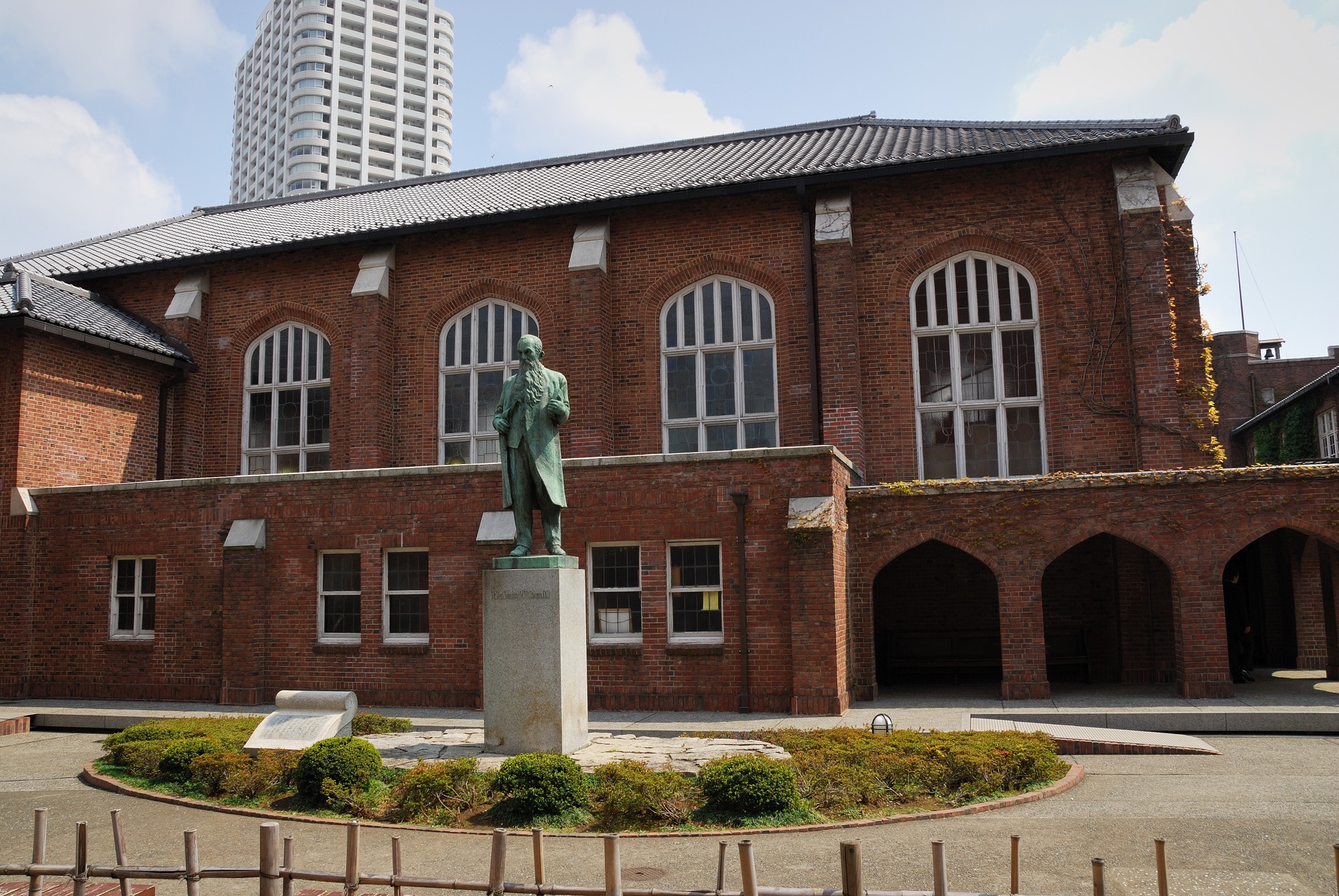 まず正面に見えるのは,創始者の方らしい銅像とその後ろのチャペル(礼拝堂)です。そこはちょっとした広場になっており,ベンチもあって休めるようになっています。その奥には,近代的な建物も配置されています。見ると周囲には同じように建物の見学に来ている方が何人かおり,写真撮影したりしていました。