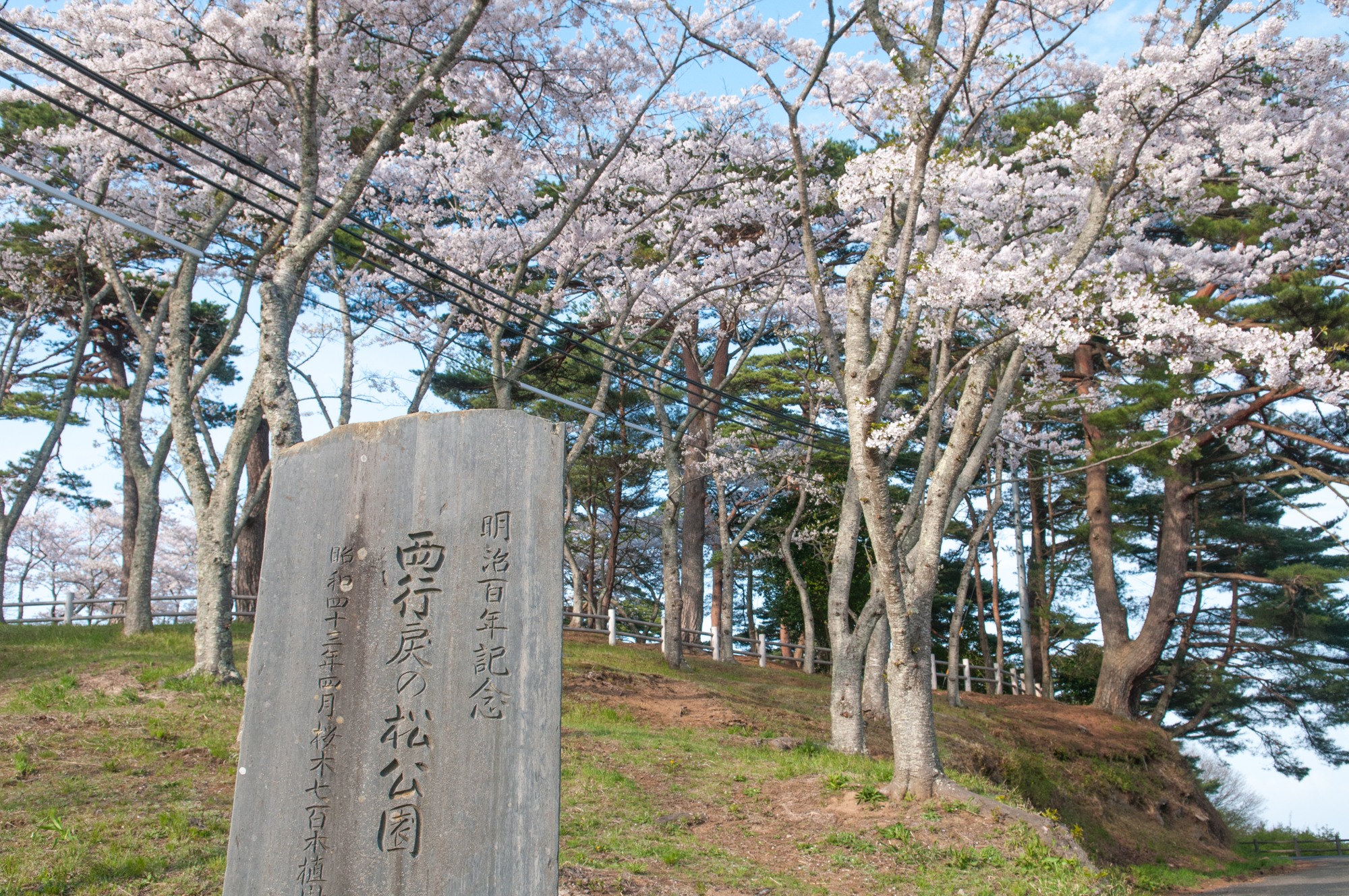 そこで気付いたのですが、東北地方では今が桜満開の時期であるので、お花見に行ってみることとしました。行き先は以前、ここの桜は見事と聞いていた、松島を見下ろす西行戻しの松公園です。