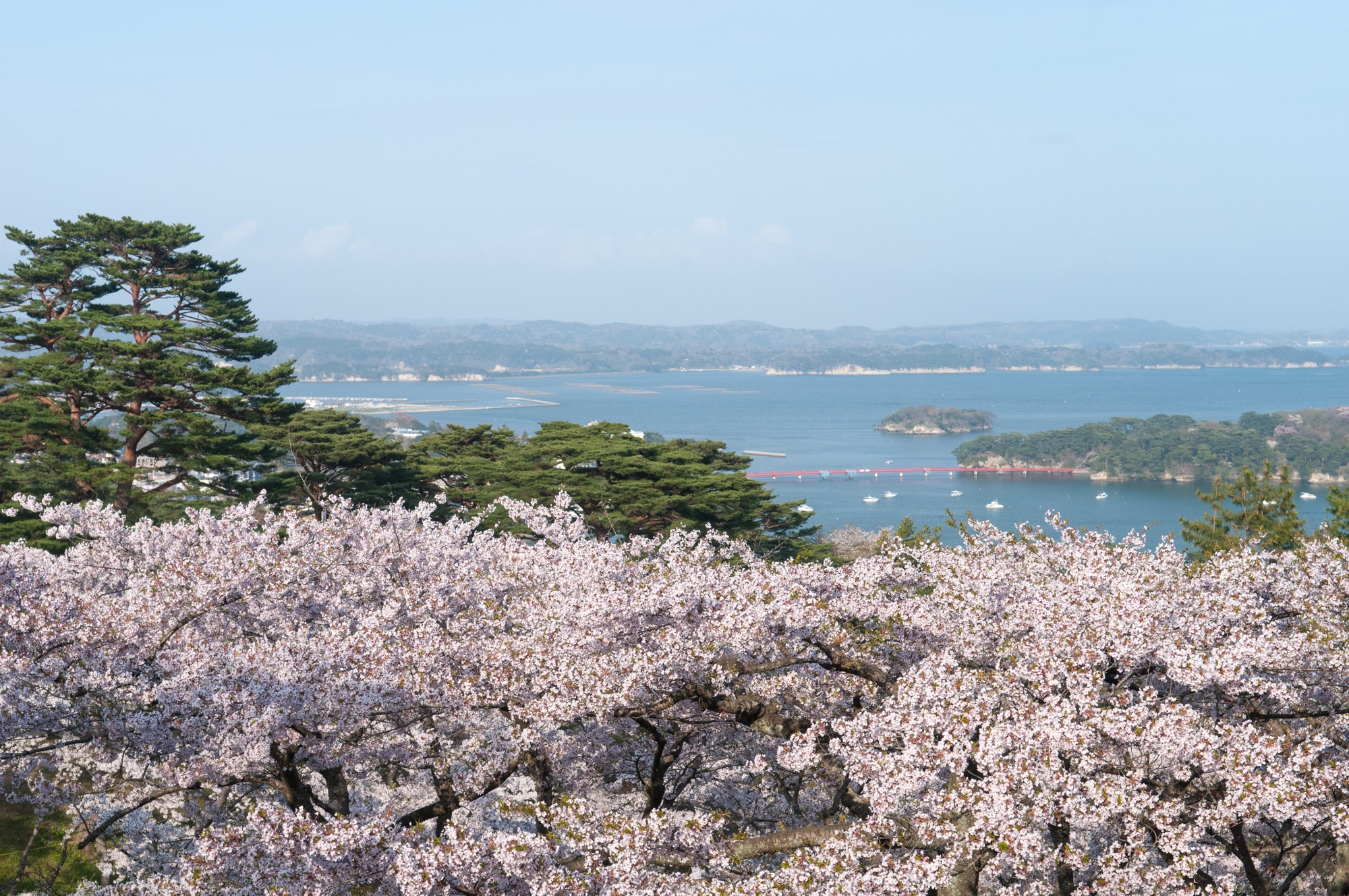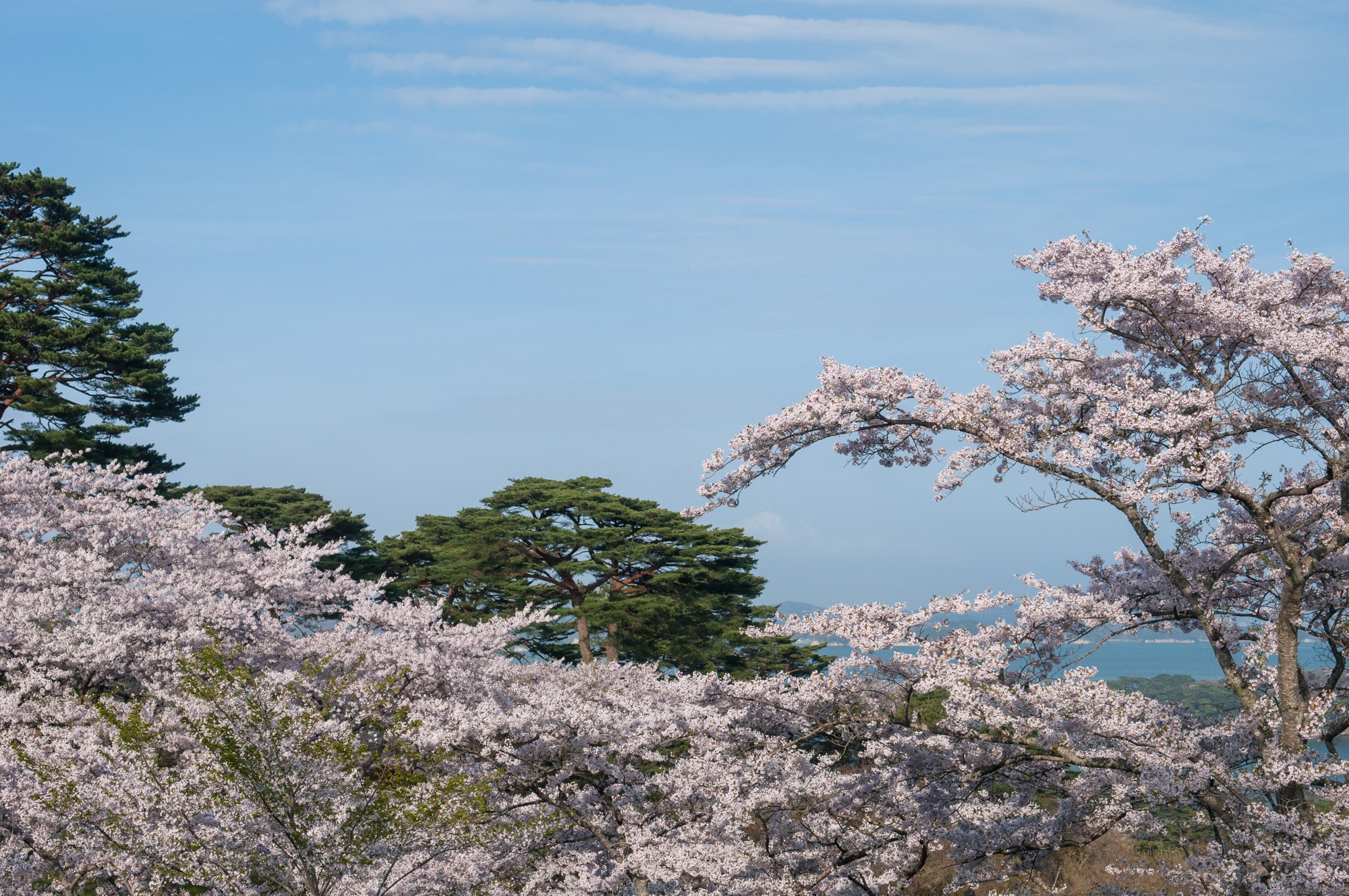 この公園には松の木も多く植えられているので、松島湾が見えなくても桜と松の美しいコンビネーションも楽しめます。