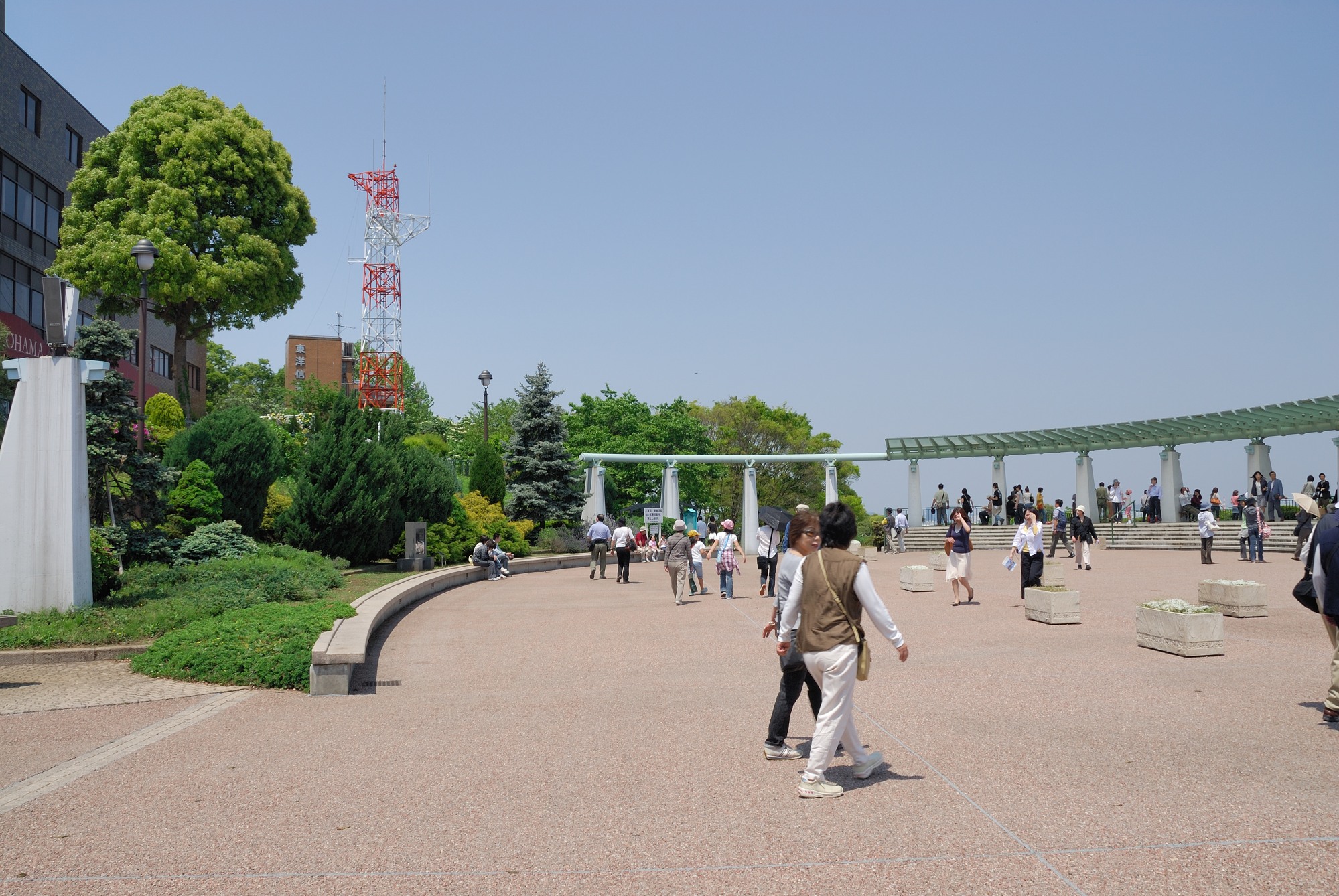 まず港の見える丘公園へ行ってみます。ここは元町のすぐ裏手の丘の上になります。周辺は混雑していましたが,まだ朝早かったせいか,駐車場は待つことなく入ることが出来ました。