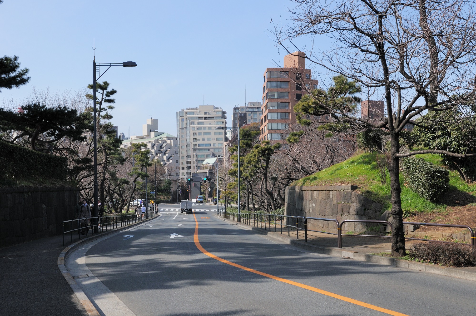 右には千鳥が淵の上を走る首都高速が,左には半蔵濠が見えます。