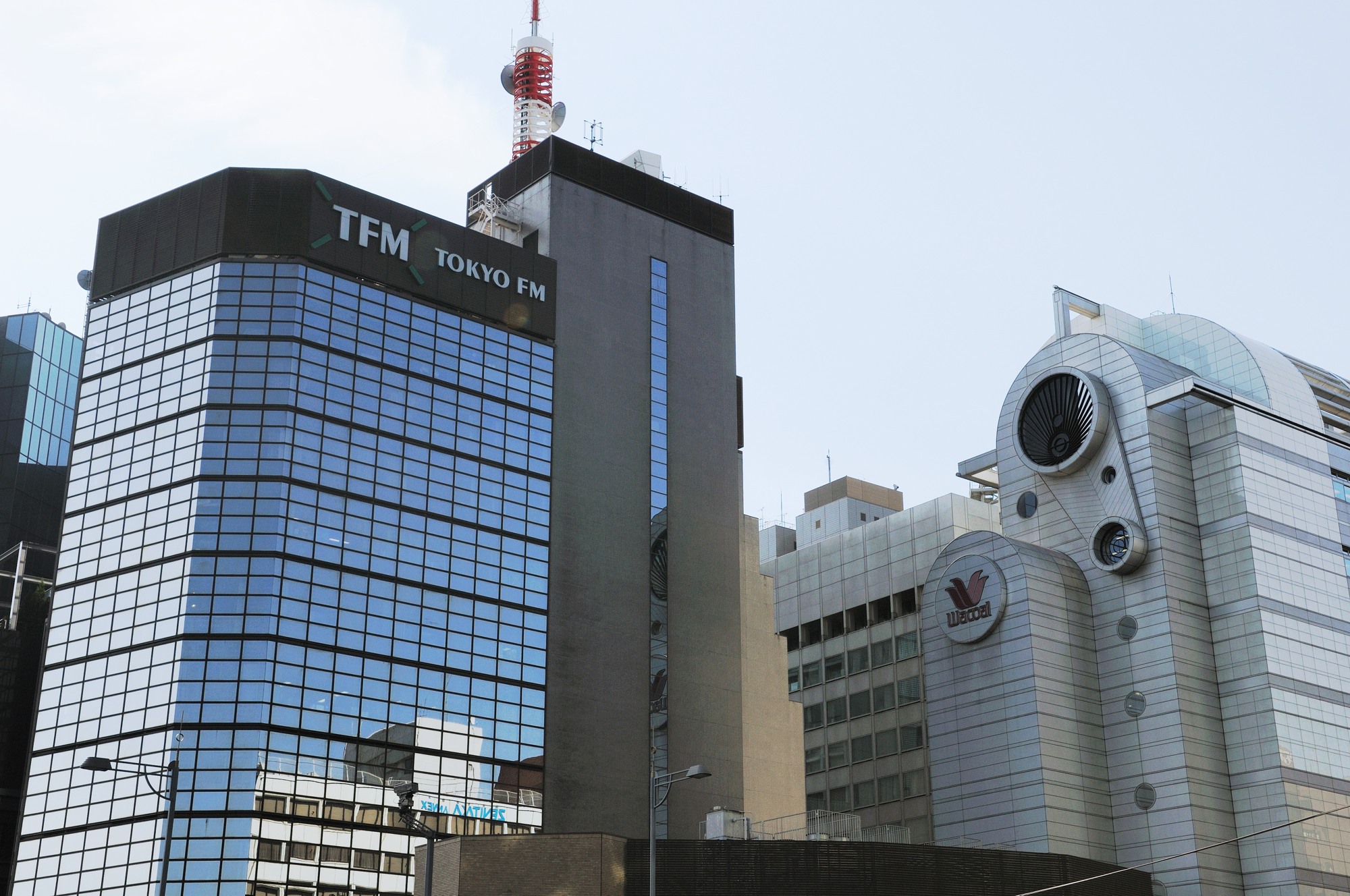 再び歩き出すと,ほどなく半蔵門です。ここの交叉点には,東京FMと並び,面白い形のワコール麹町ビルがあります。これは昭和59年に,建築家黒川紀章によるデザインで,ビル側面の歯車とベルトの形がとても目を引きます。