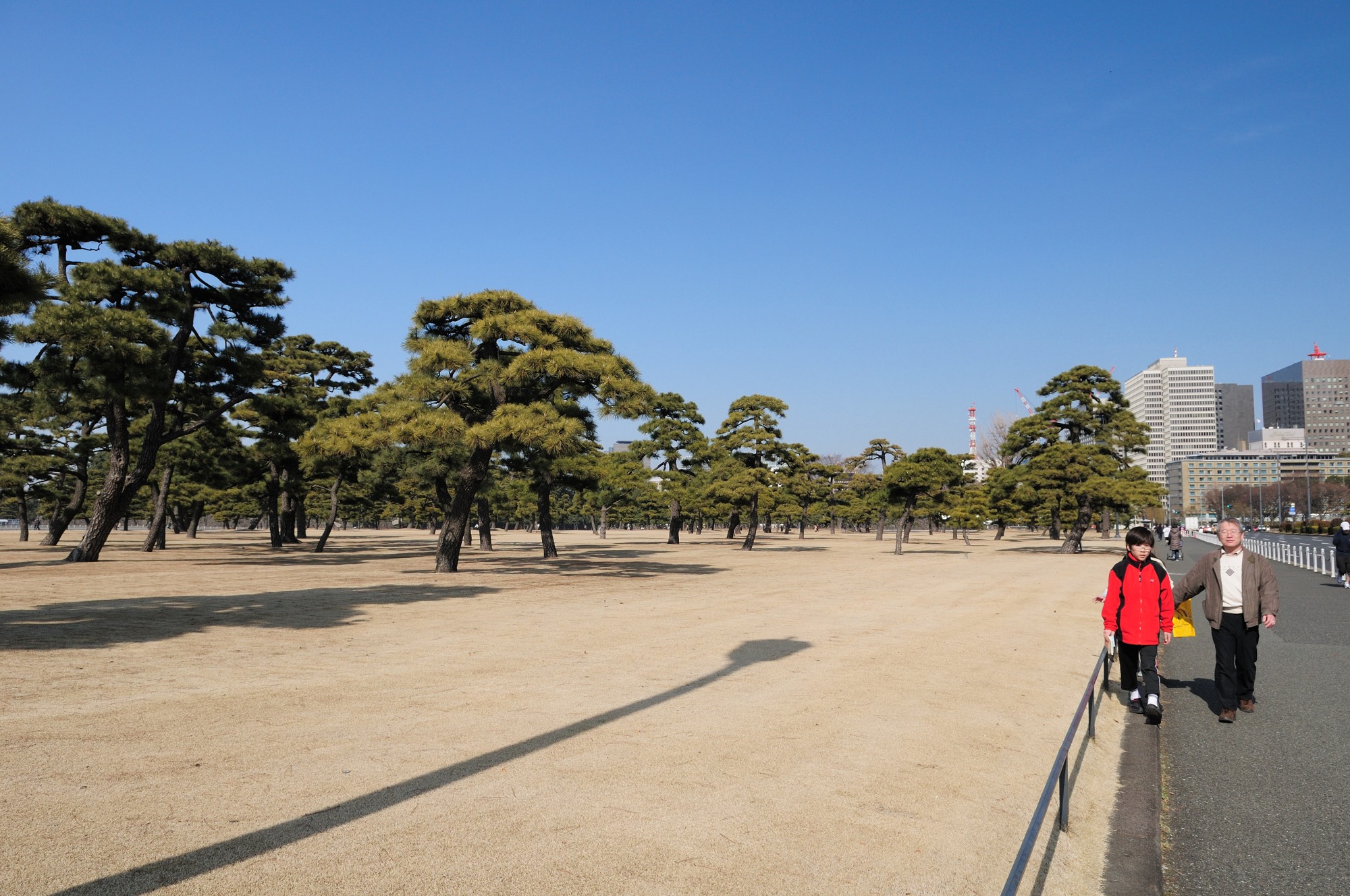 この一帯は皇居外苑となります。左側には松の木がたくさん植えてあります。