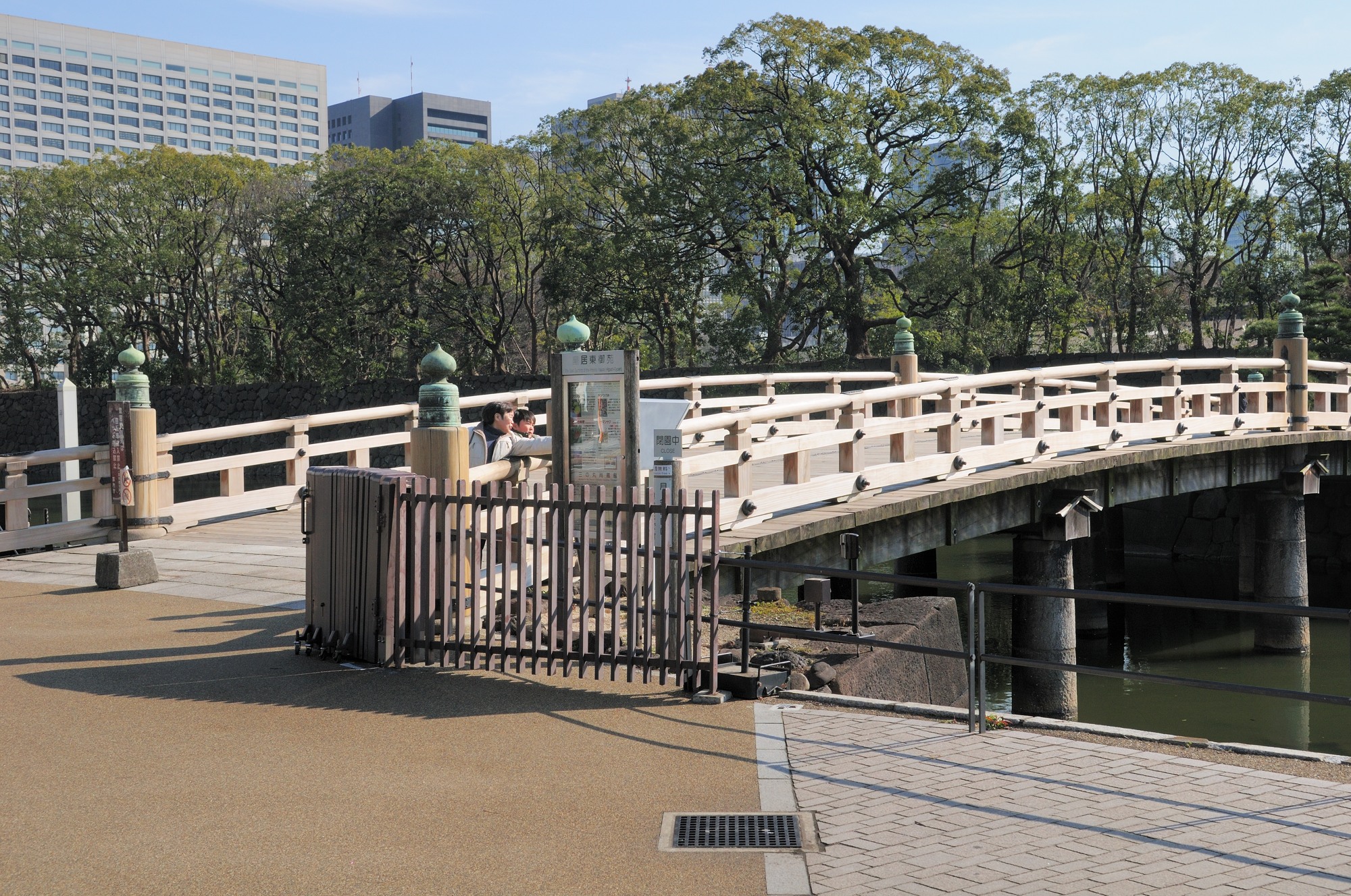 まず正面の北桔橋門(きたきつはしもん)をちょっと見ます。昨年皇居内苑を見た時は,この門から入りました。