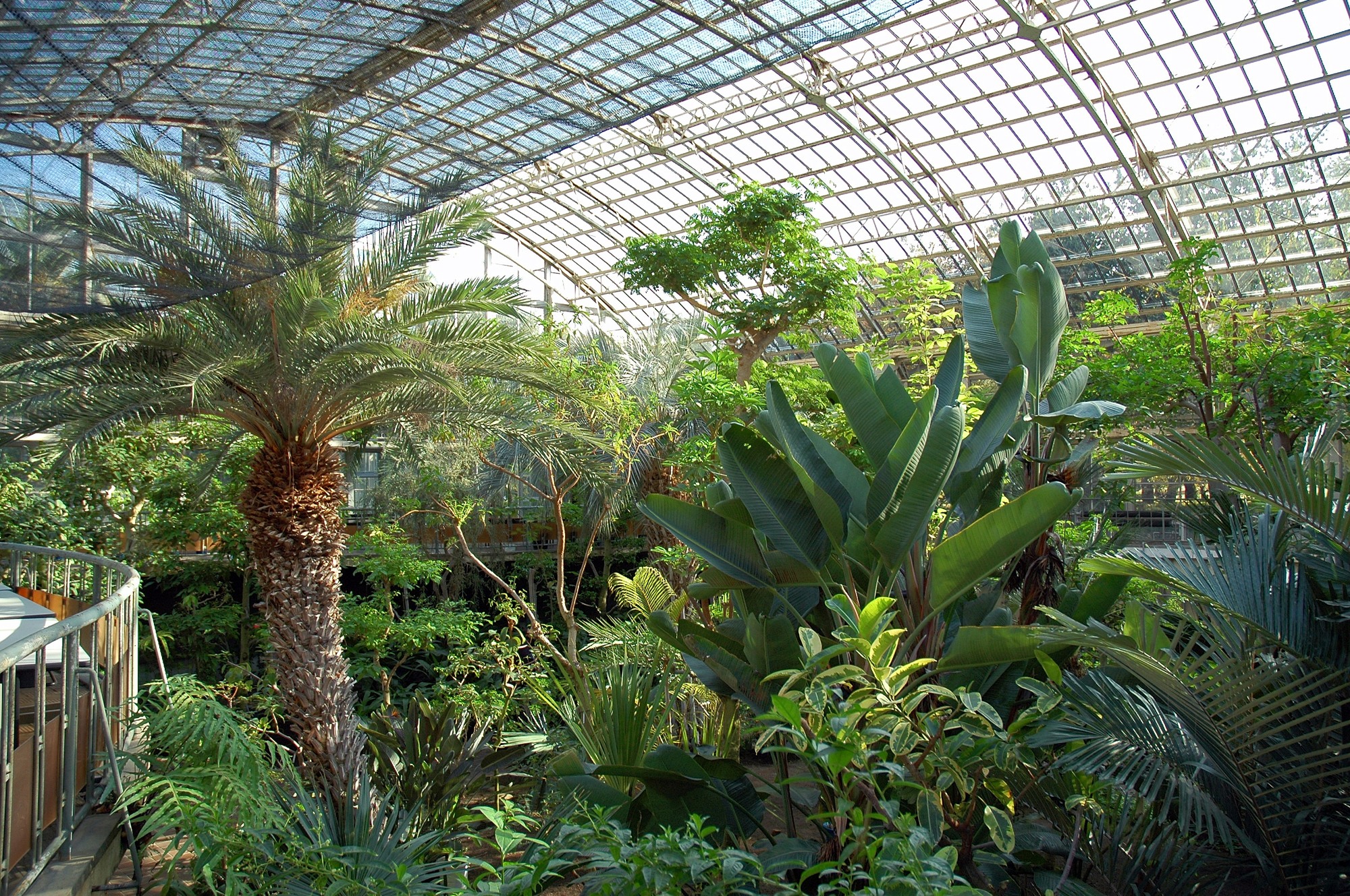 ほどなくある建物が見えてきます。入り口を見ると「温室」とあるので、何だろうと思いつつ中に入って見ることにします。入り口にはフェニックスみたいな南国風の木があったりして、いい感じです。