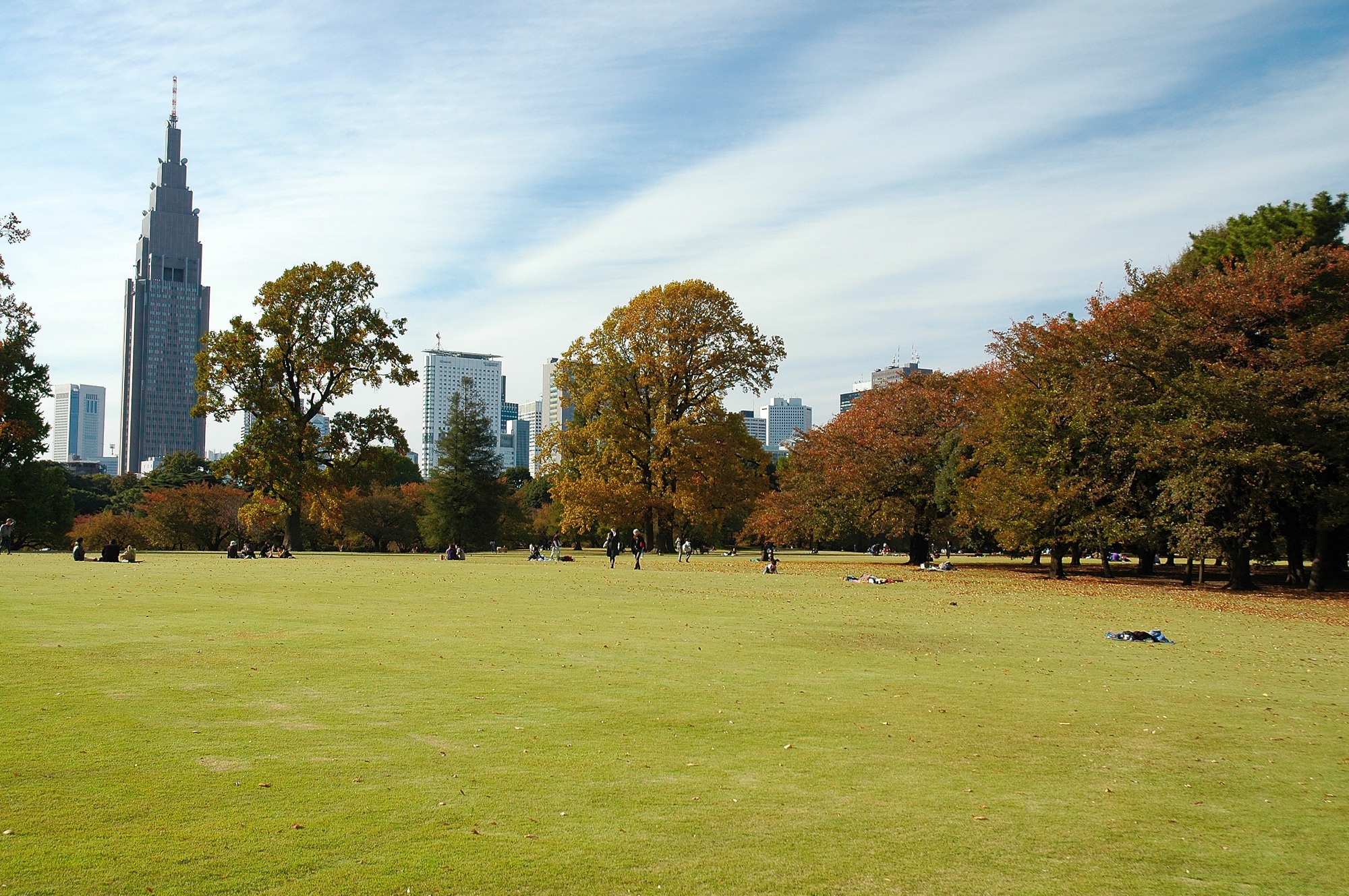 さてさて行き先を変えるのはいいのですが、問題はどこへ行くか、です。ちょっと考えたら、新宿はもうすぐ先。そう言えば新宿御苑なんて、もう10年以上も行ってないなあ、と思いつき、久しぶりの新宿御苑へ向かうことにしました。紅葉がどこまで進んでいるかが心配でしたが・・・。ほどなく首都高を外苑ランプでおりて四谷を抜けたらまもなく新宿御苑です。近くの駐車場へ車を止めて歩いていきます。