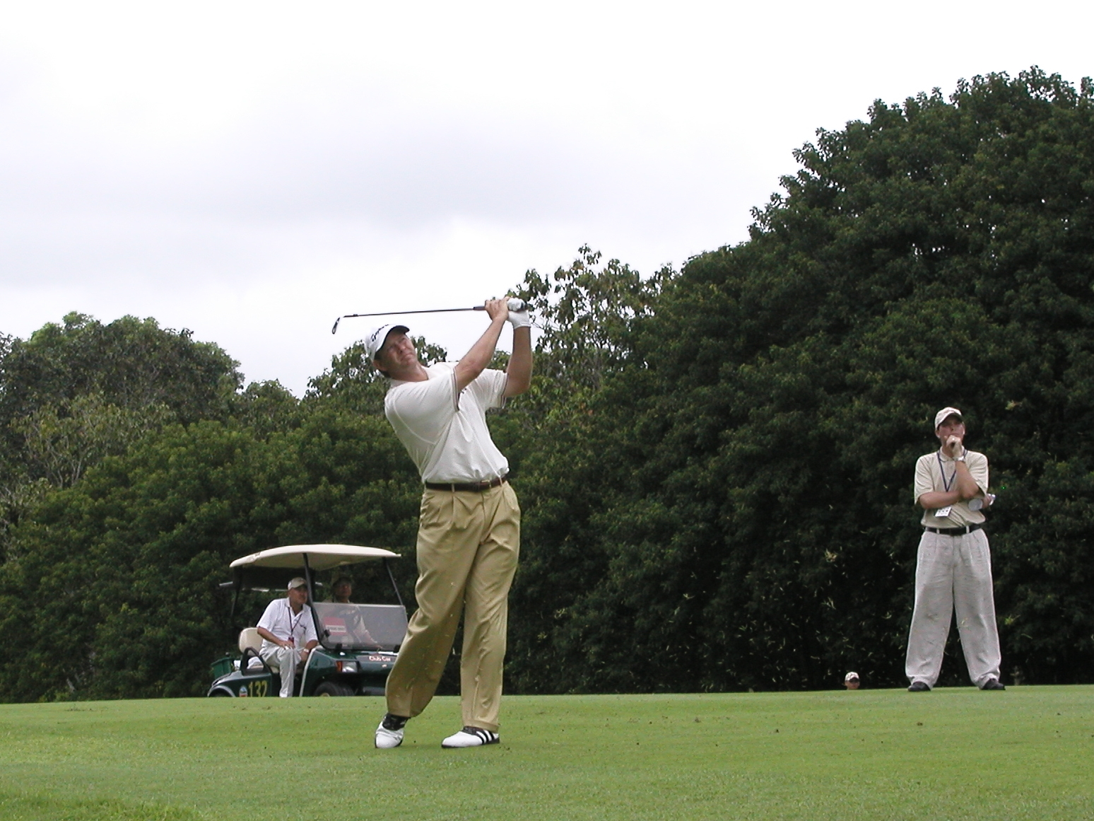 シンガポールで年に1回開催される「Tiger Skin 2003」というチャリティコンペに今年はアニカを初めとして、グーセン、パーネビックという世界有数のプロゴルファーが招待されました。これにシンガポーリアンのプロのラムを加え、4人でマッチプレーを行なったのです。