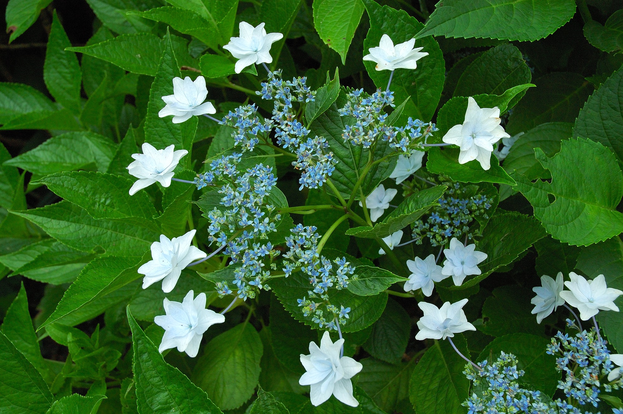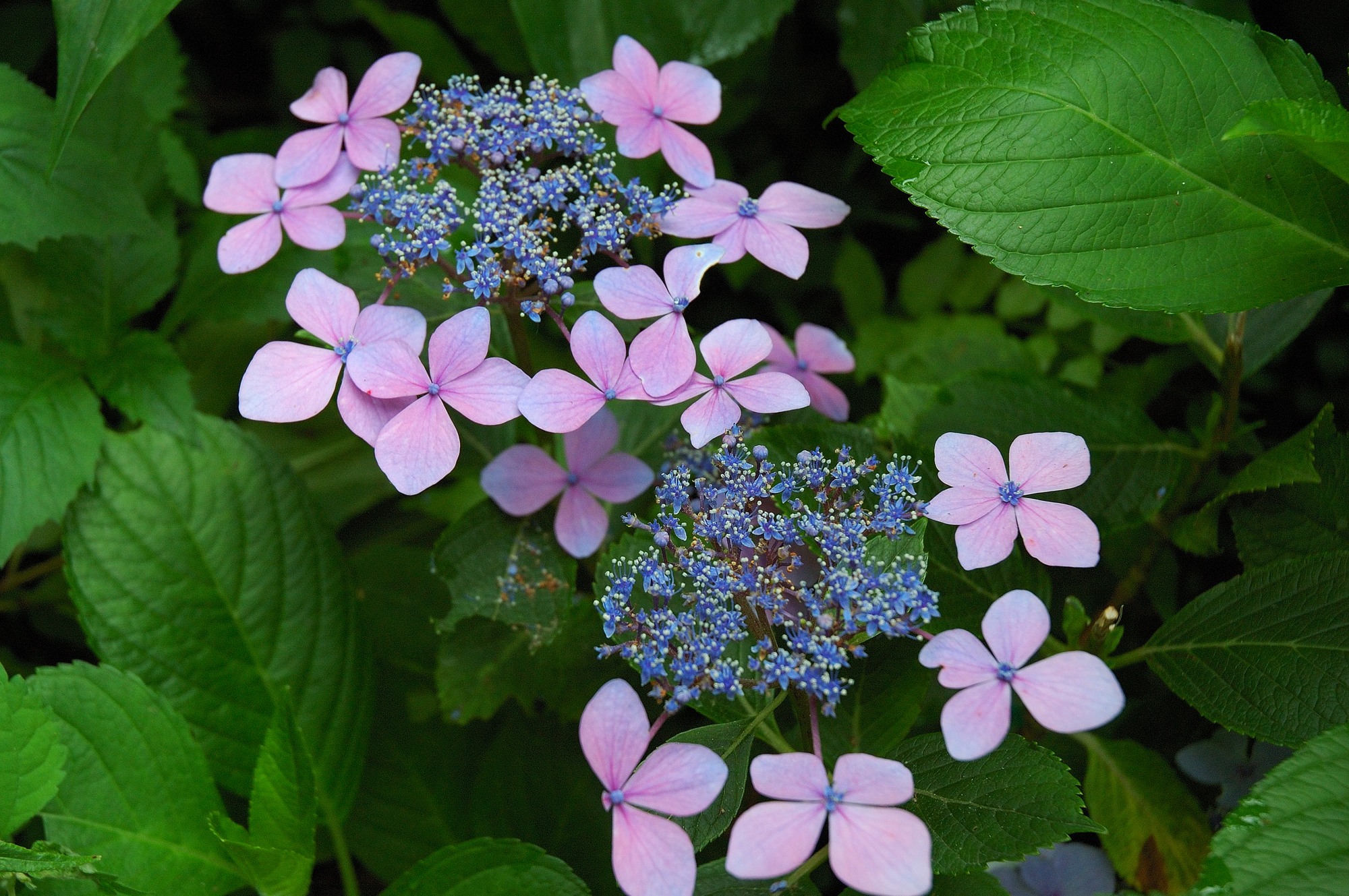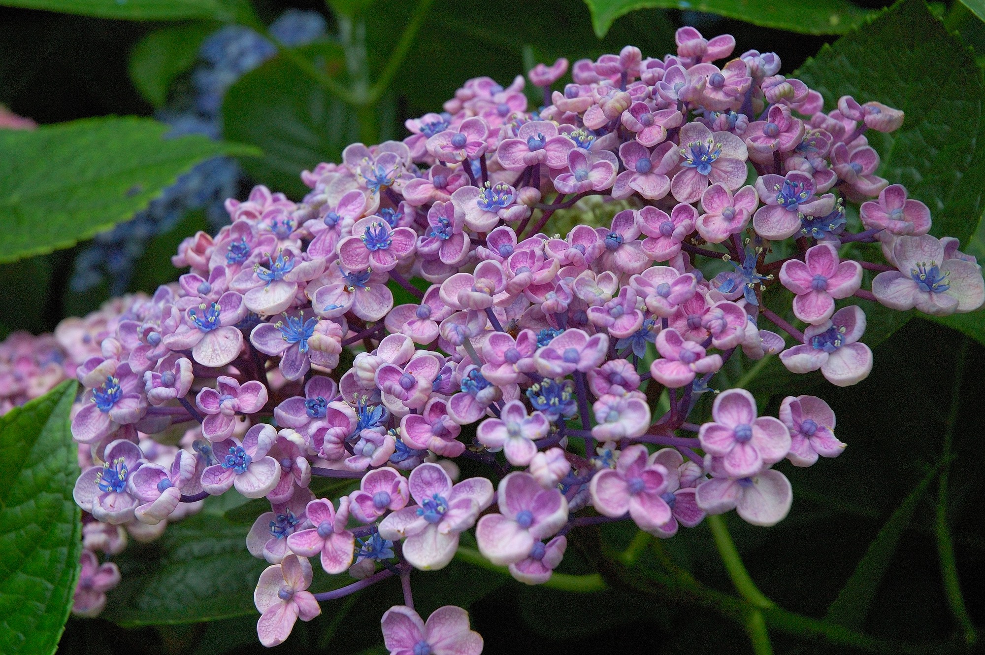 ここにあるのは姫あじさいに似ていますが、色は青だけでなくピンクもあるので、どうやら西洋あじさいのようです。しかし姫あじさいに負けないくらい綺麗です。