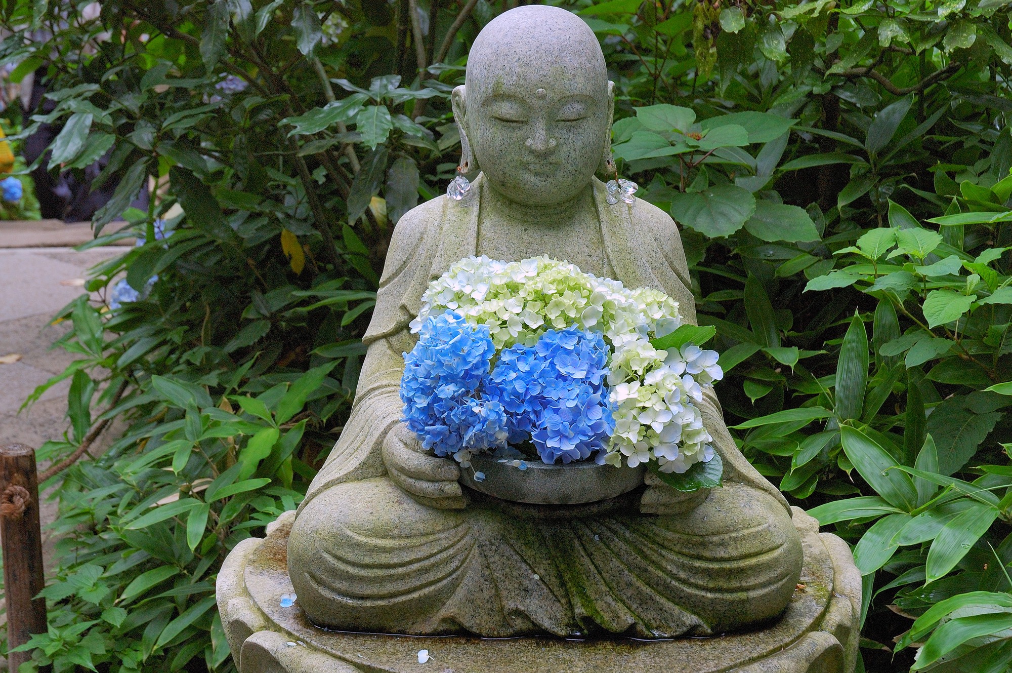 あじさいをかかえたお地蔵さん