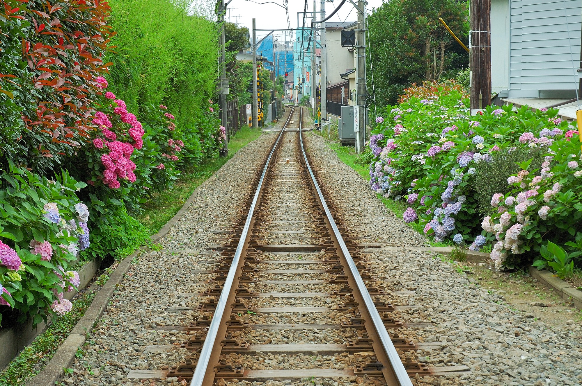 住宅地の中を走る江ノ電の線路
