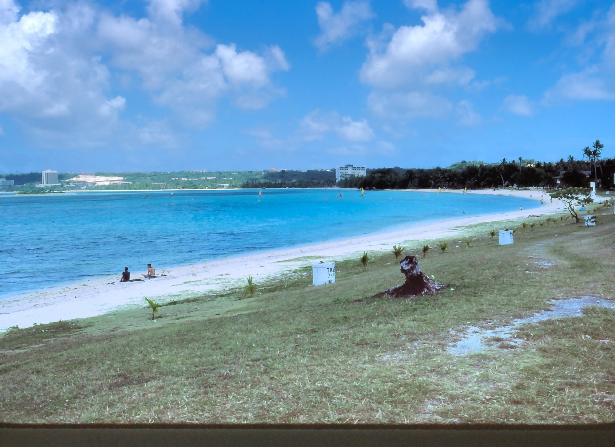 成田空港で出発予定のフライトが故障で12時間も遅れてしまい、やはりグアムの基地に帰るというアメリカ人の兵隊さんと3人でレストランに入り、なれない英語と日本語で会話しながら時間つぶしをしたというハプニングもありました。