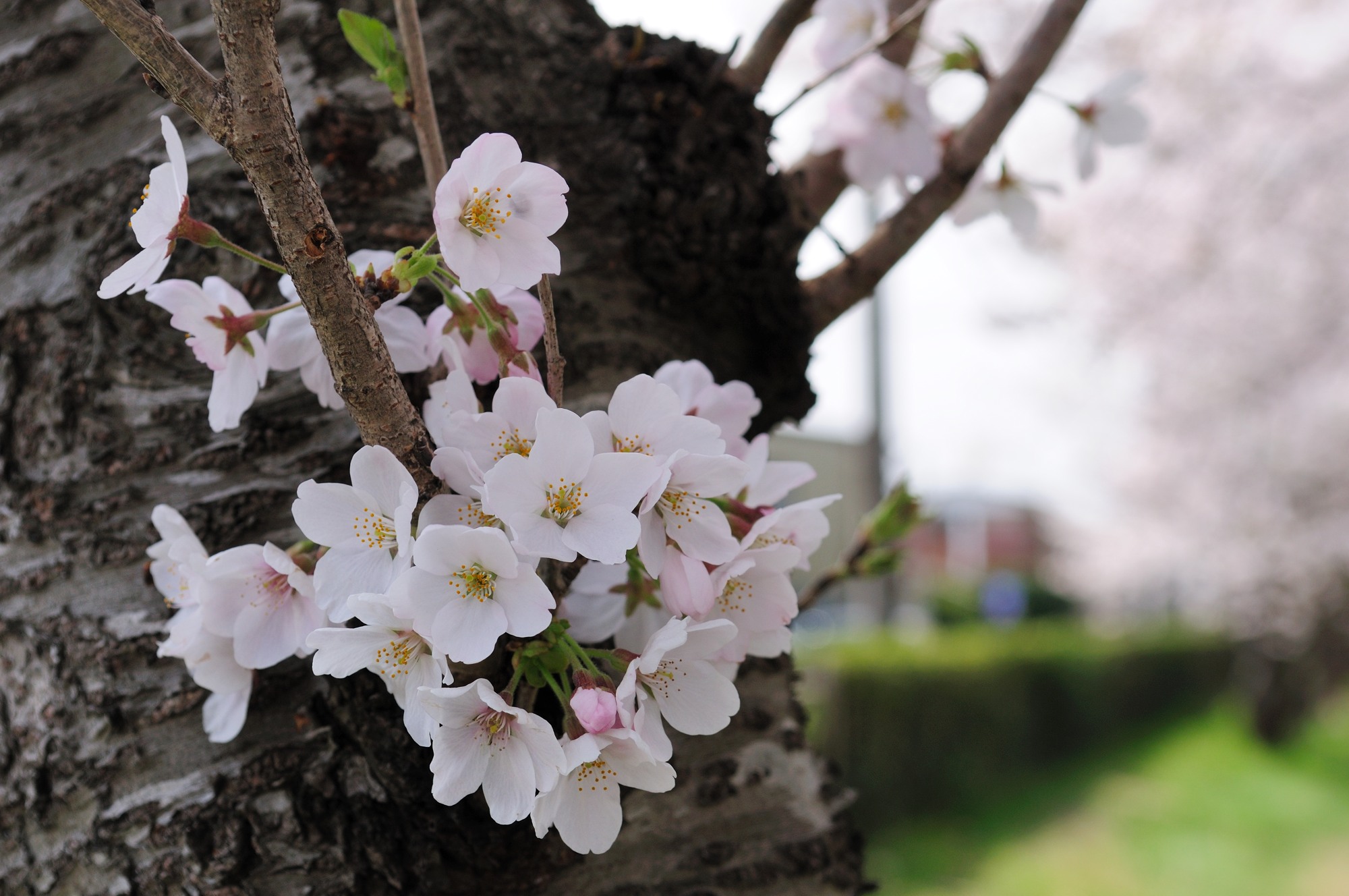良く見ると一部の木には幹からすぐ桜の花が咲いています。近づいて見ると,とても可愛らしく見えました。