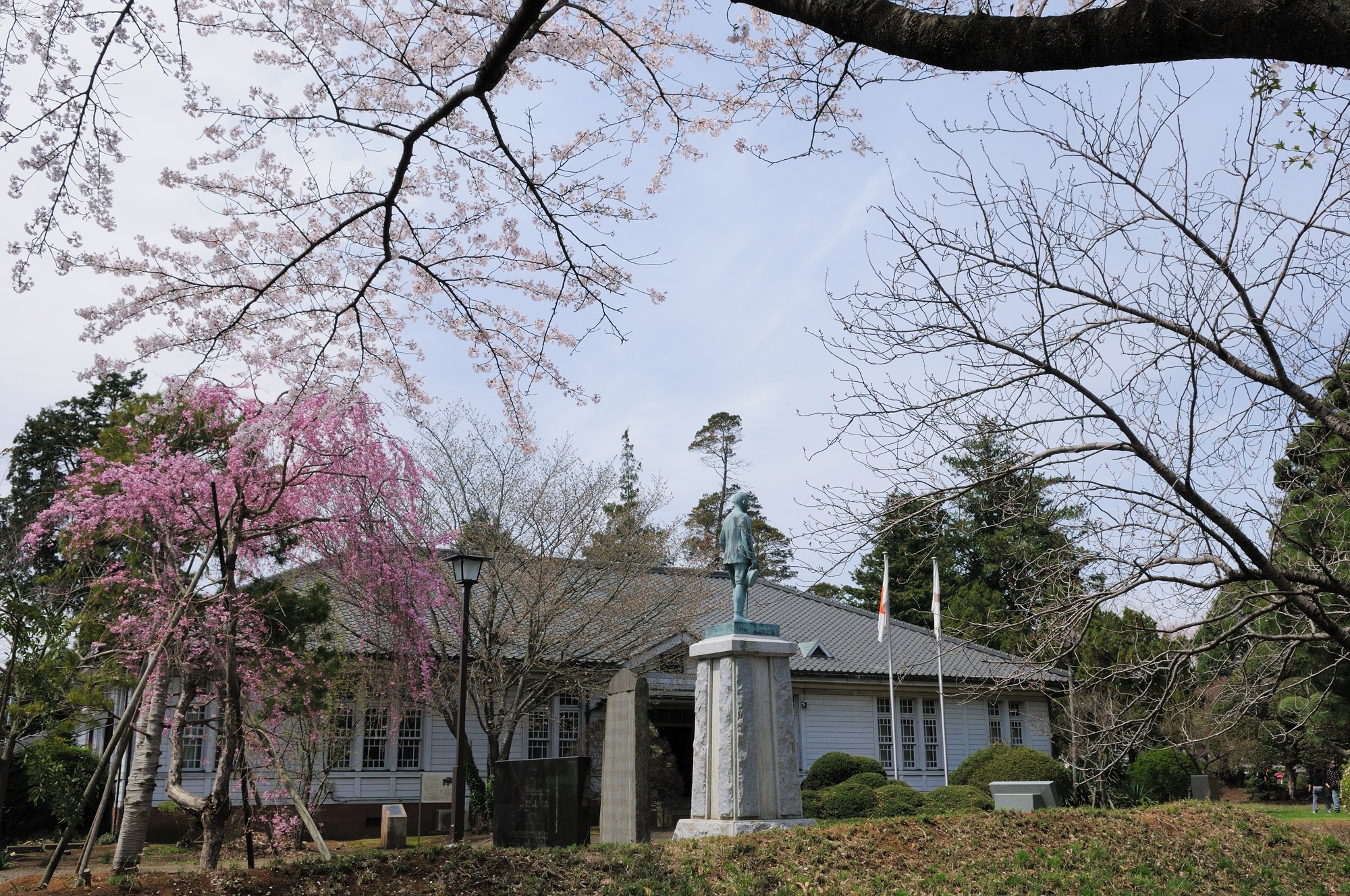 奥の突き当りまで行くと,記念館と銅像が見えます。建物は三里塚御料牧場記念館で,皇室関係の資料がたくさん展示されているようですが,今回は中には入りませんでした。銅像は御料牧場第五代場長である新山荘輔博士です。新山博士は1856年に山口県萩で生まれ,現在の東京大学農学部を卒業した後,海外の畜産先進国を幾度も視察し,日本の畜産獣医学の発展に寄与されたそうです。御料牧場の第五代場長にも任命されています。
