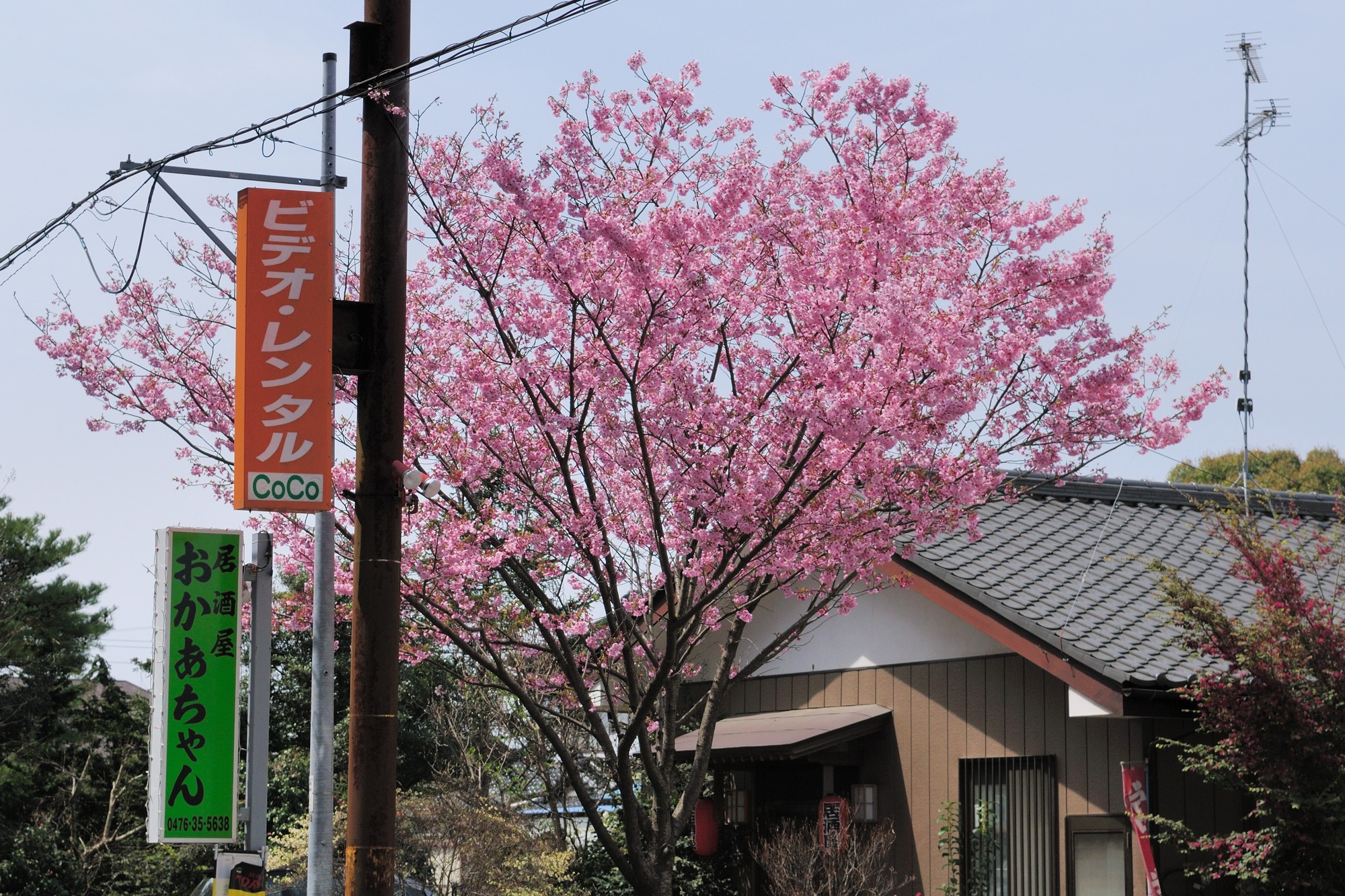 帰る途中にも,居酒屋の前に1本,美しいピンクの桜が咲いていたのでその写真も撮りました。