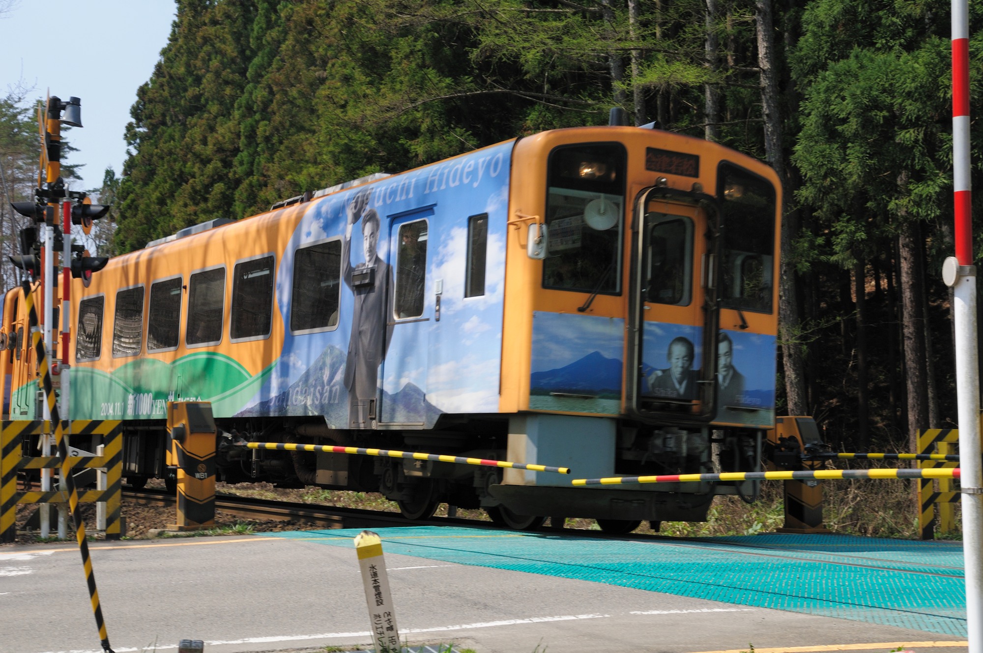 鉄道の正面、横には、地元の英雄「野口英世」が書かれています。2両編成のジーゼル車で何ともいえない風情がありました。