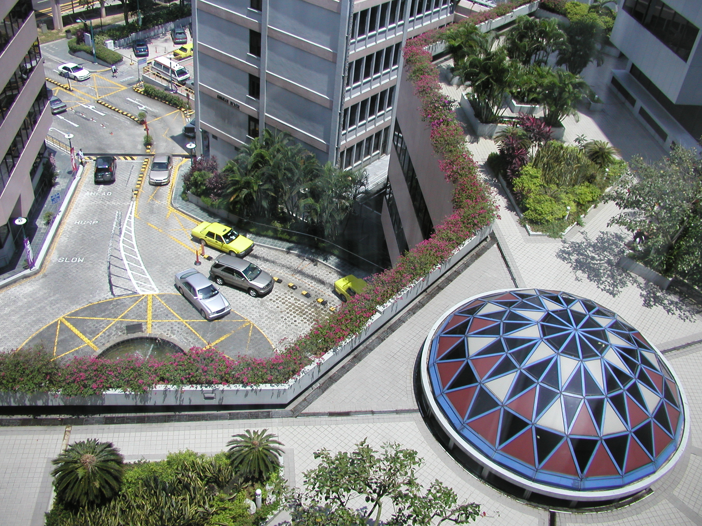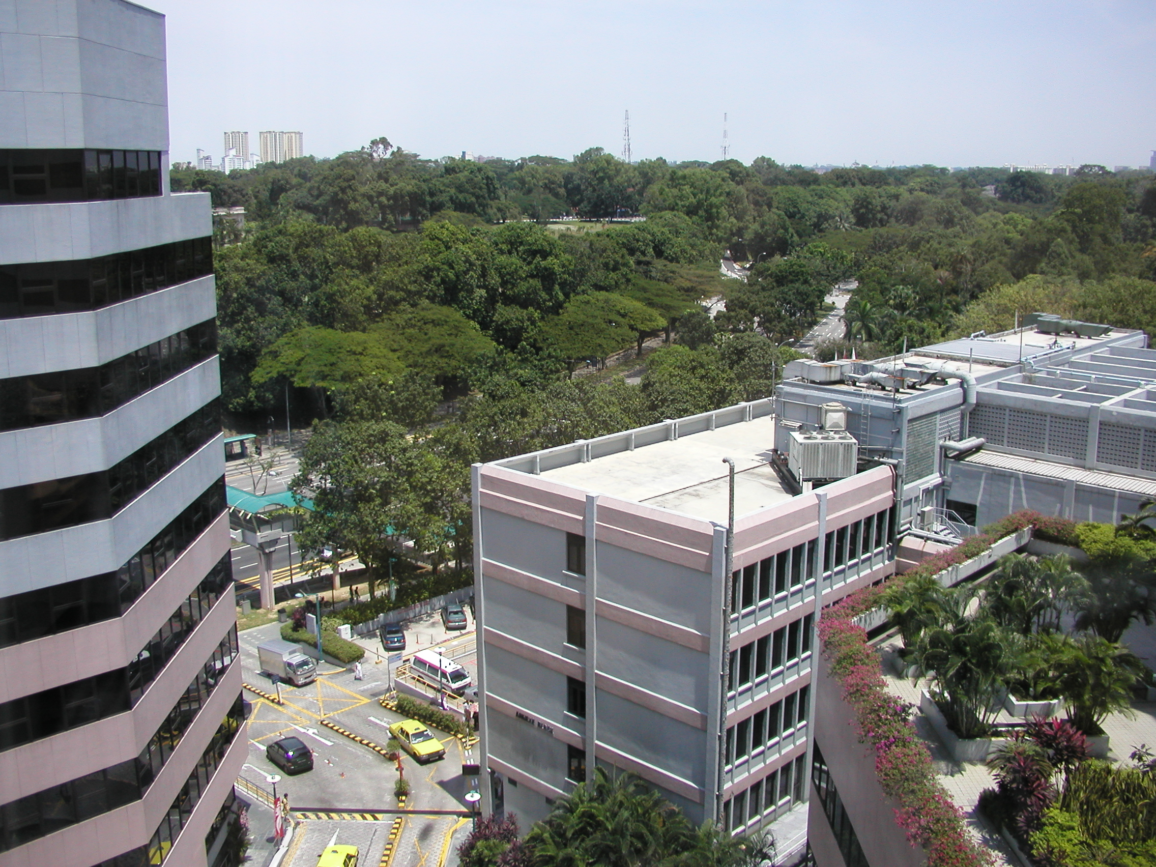 1日中病室にいると息が詰まりそうなので、ちょくちょく喫煙も兼ねて行ったものです。昼間は流石に暑いですが、朝夕は風が吹いてとても気持ちのいい空間です。こういう病院の中にこういう場所を作っている所は、環境に気を使うシンガポールらしいな、と思いました。
