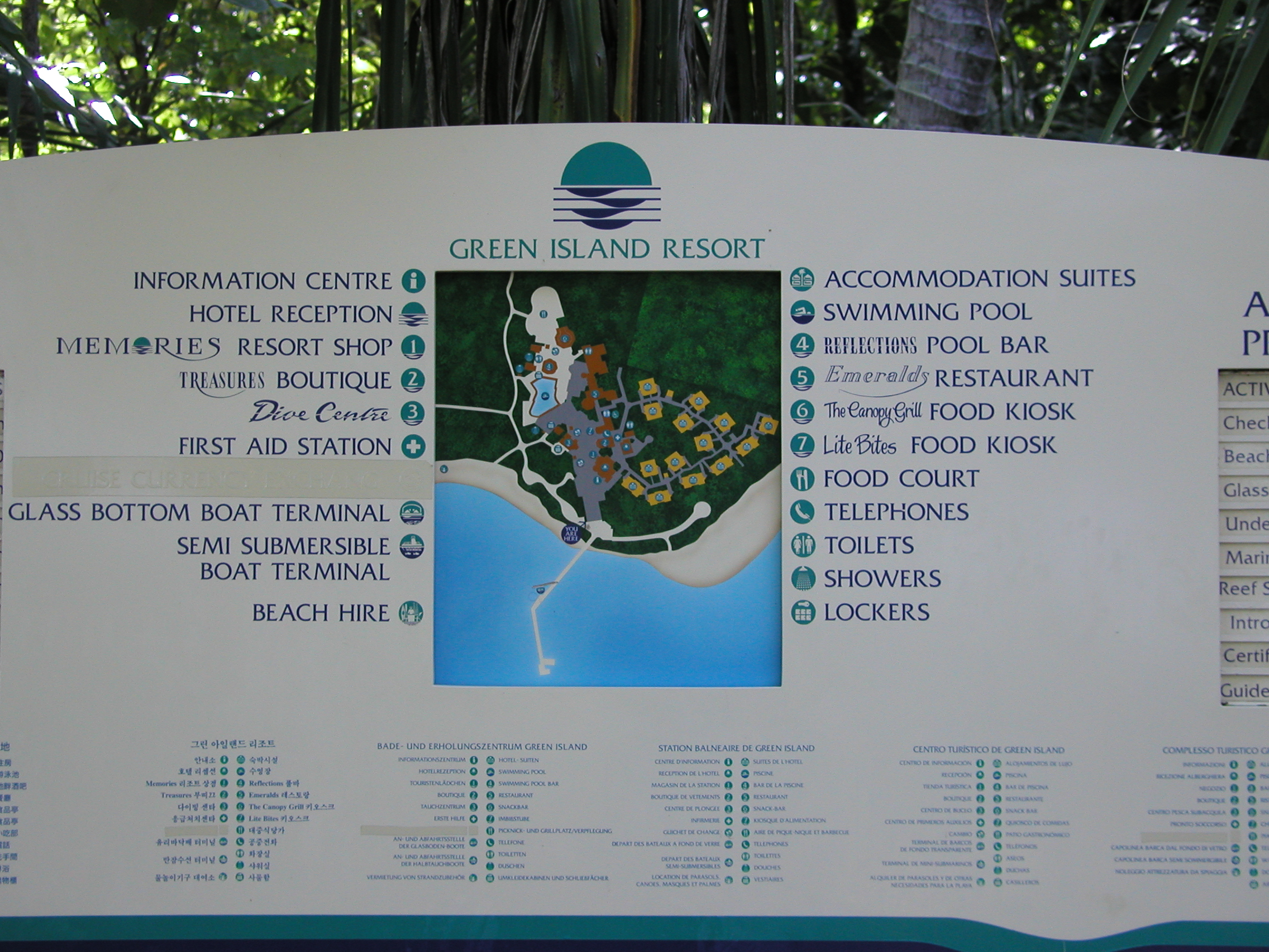 グリーン島そのものはさほど大きくありません。ガイドさんによるとここでまず3時間ほど自由行動なのでまず真っ直ぐ進んでみますが、入り口の当たりは両脇に何軒かのおみやげ屋さんや簡単なレストランがあるのみです。奥に行って見ると小さな動物園がありましたが、ここまできて動物園じゃあないだろう、ということでパスし、左側の海岸へ行って見ます。
