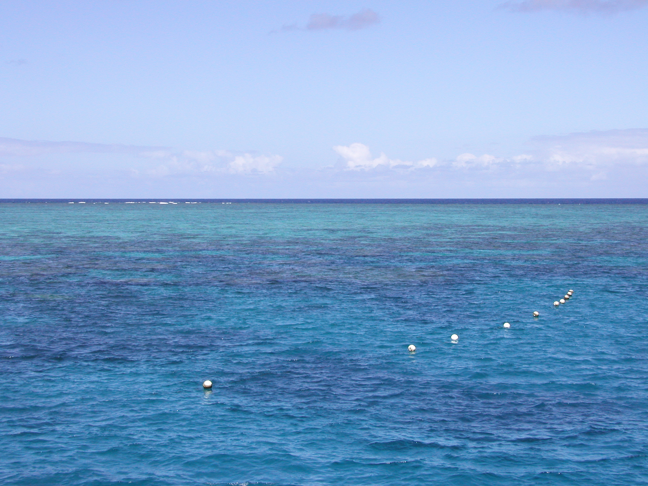 サンゴ礁なので海岸線から近くはなくフェリーで沖合いに1~2時間くらい走ったあたりにあるので、ここグリーン島からも更に1時間フェリーに乗ります。そこには「ポンツーン」と呼ばれる専用のフェリー停泊場があり、そこで海に潜って楽しむのです。