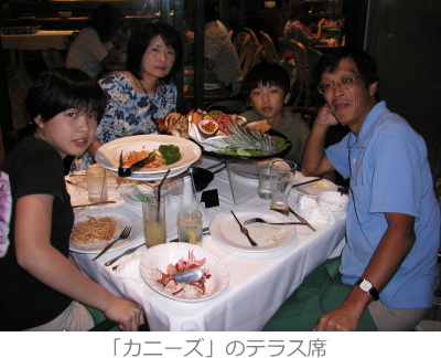 今夜の夕食はまた街中へ歩いて、シーフードの「カニーズ」へ行きます。