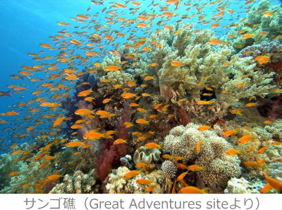 ひとつ気付いたのは、実際に見るサンゴ礁は白くないということ。意外なほど茶色っぽい色でした。