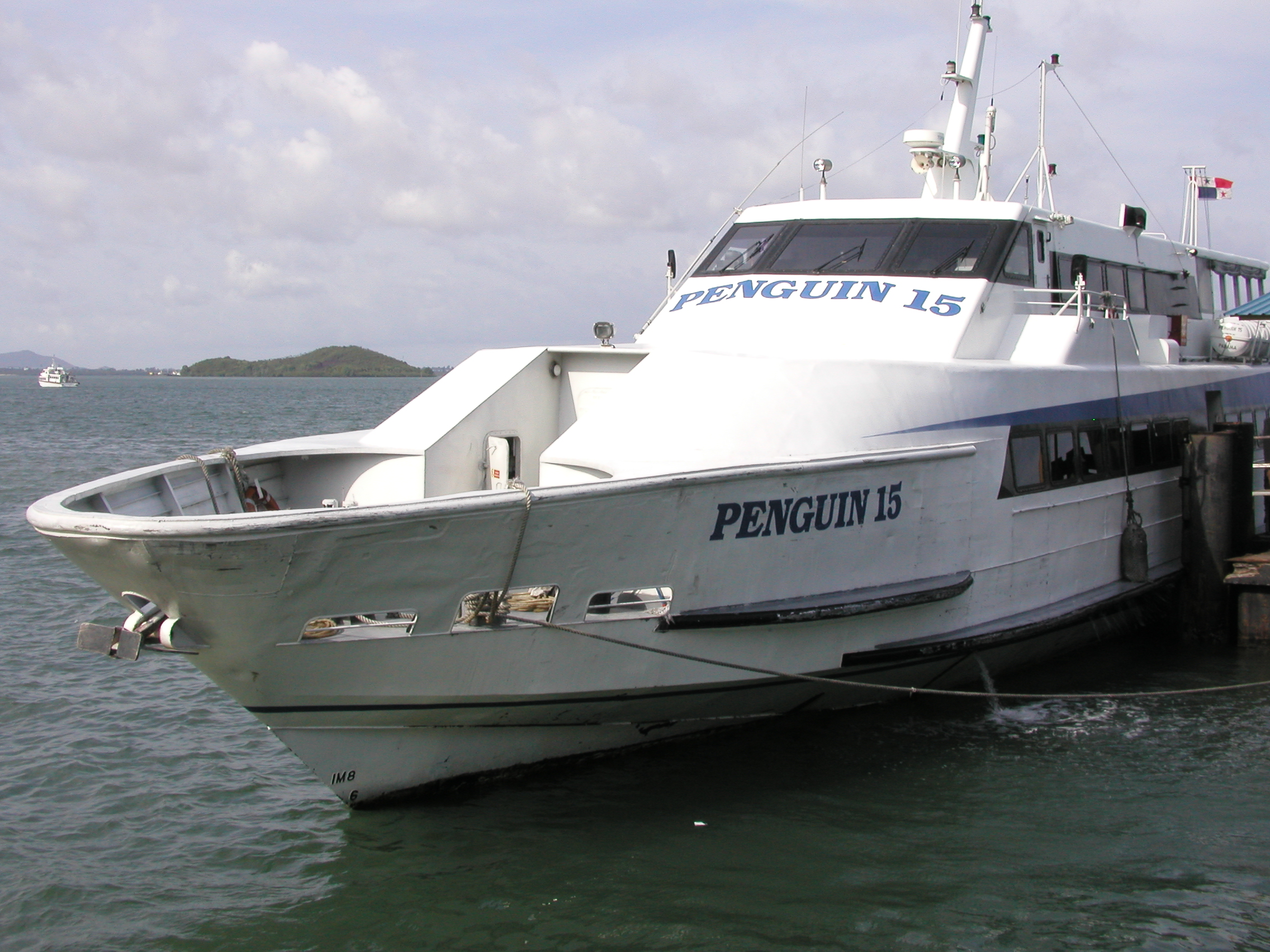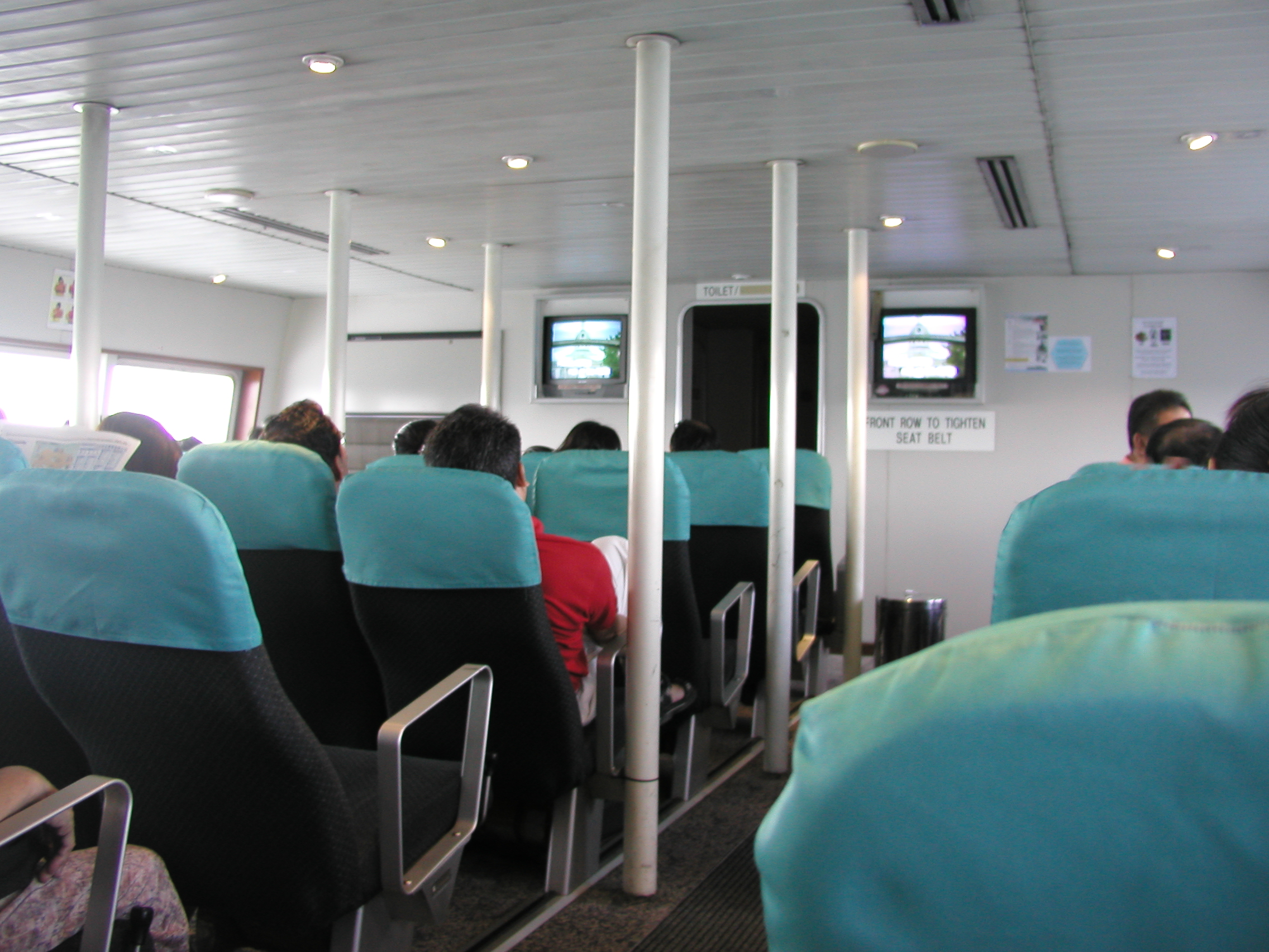 このフェリーは意外と大きくて250人位は乗れます。中は冷房がよくきいているので寒いくらいです。この中でお弁当を食べながら50分ほどでバタム島に到着します。