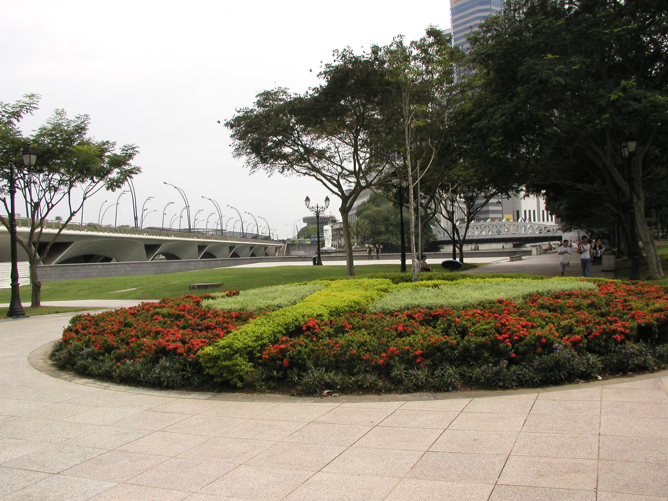 これを渡ってすぐ右側に下りると、そこはエリザベス・ウオークという公園です。ここは結構広く緑豊かで、川をはさんでマーライオンを見ることも出来るので、散策している人が大勢います。