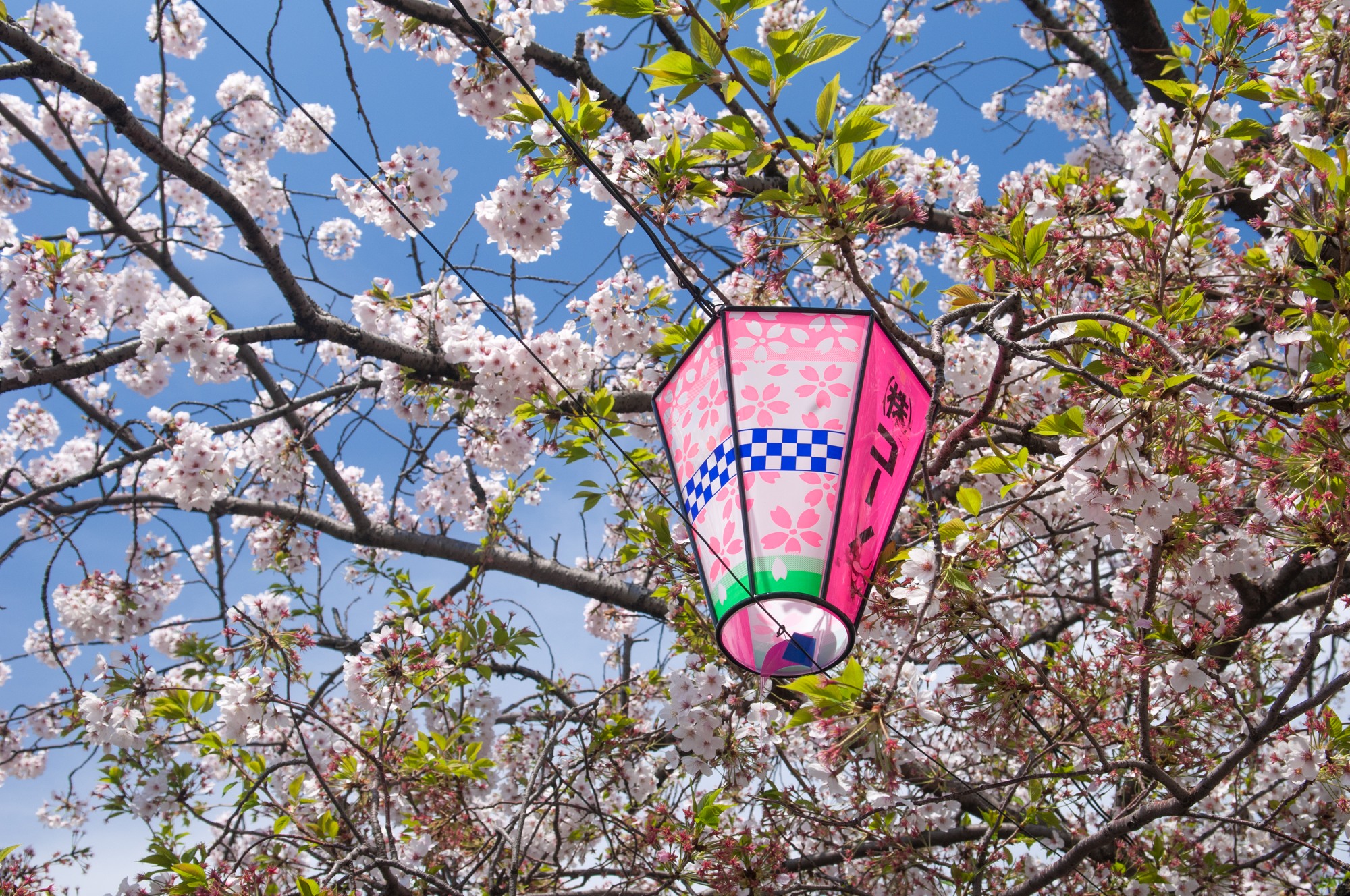 川に沿った歩道を歩きますが、お祭りでもあったのでしょうか、提灯みたいなのが多くぶら下がっています。
