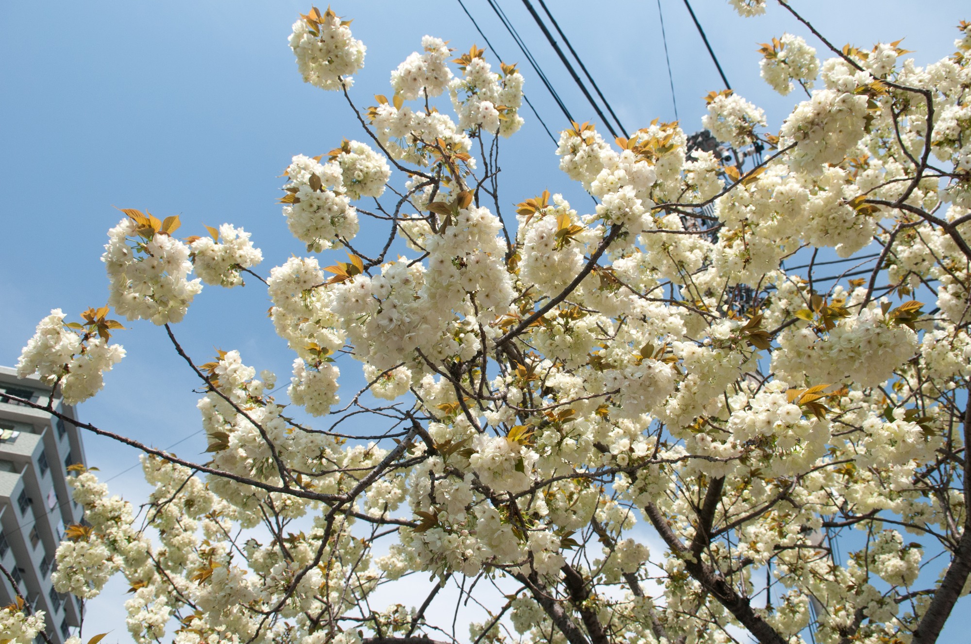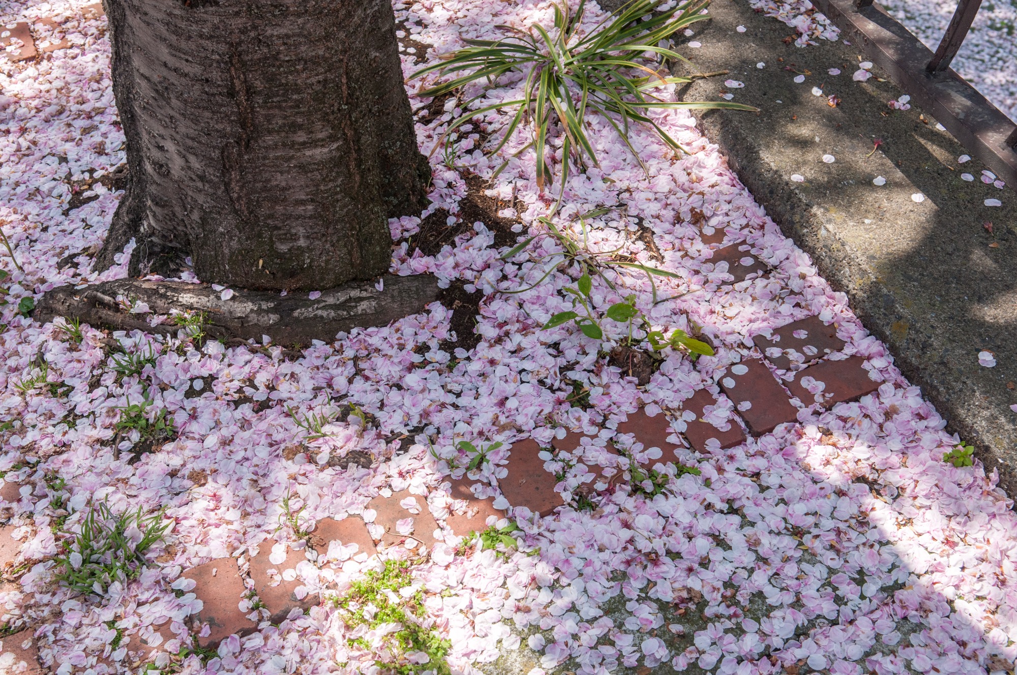 桜の花は本当に綺麗です。いくつかの桜の種類があり、また、木の根元にも花びらが散っており、大変綺麗でした。このあたりで、来てみて本当に良かったと感動しきりでした。