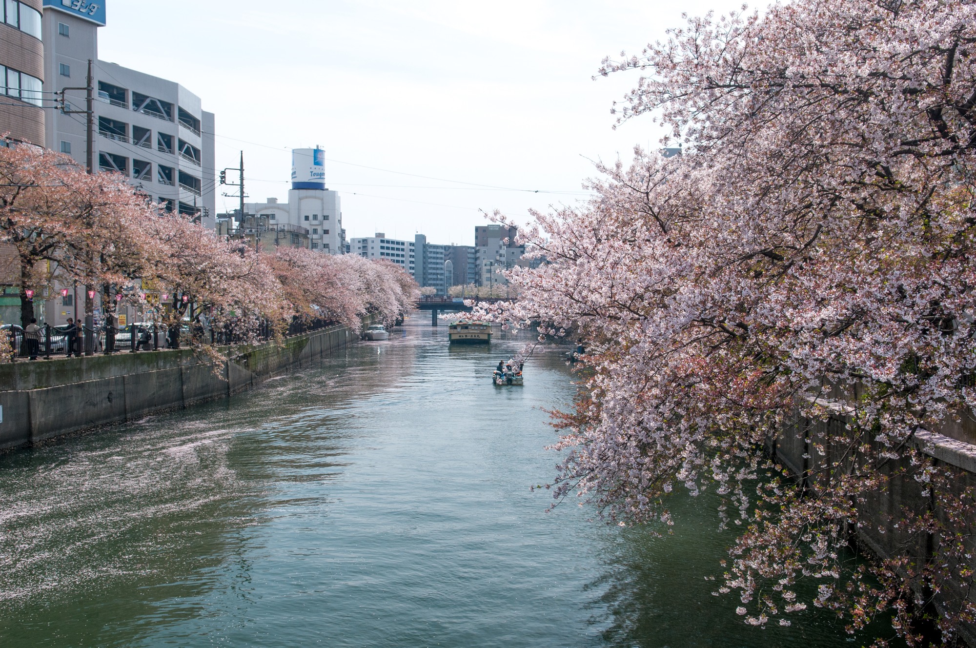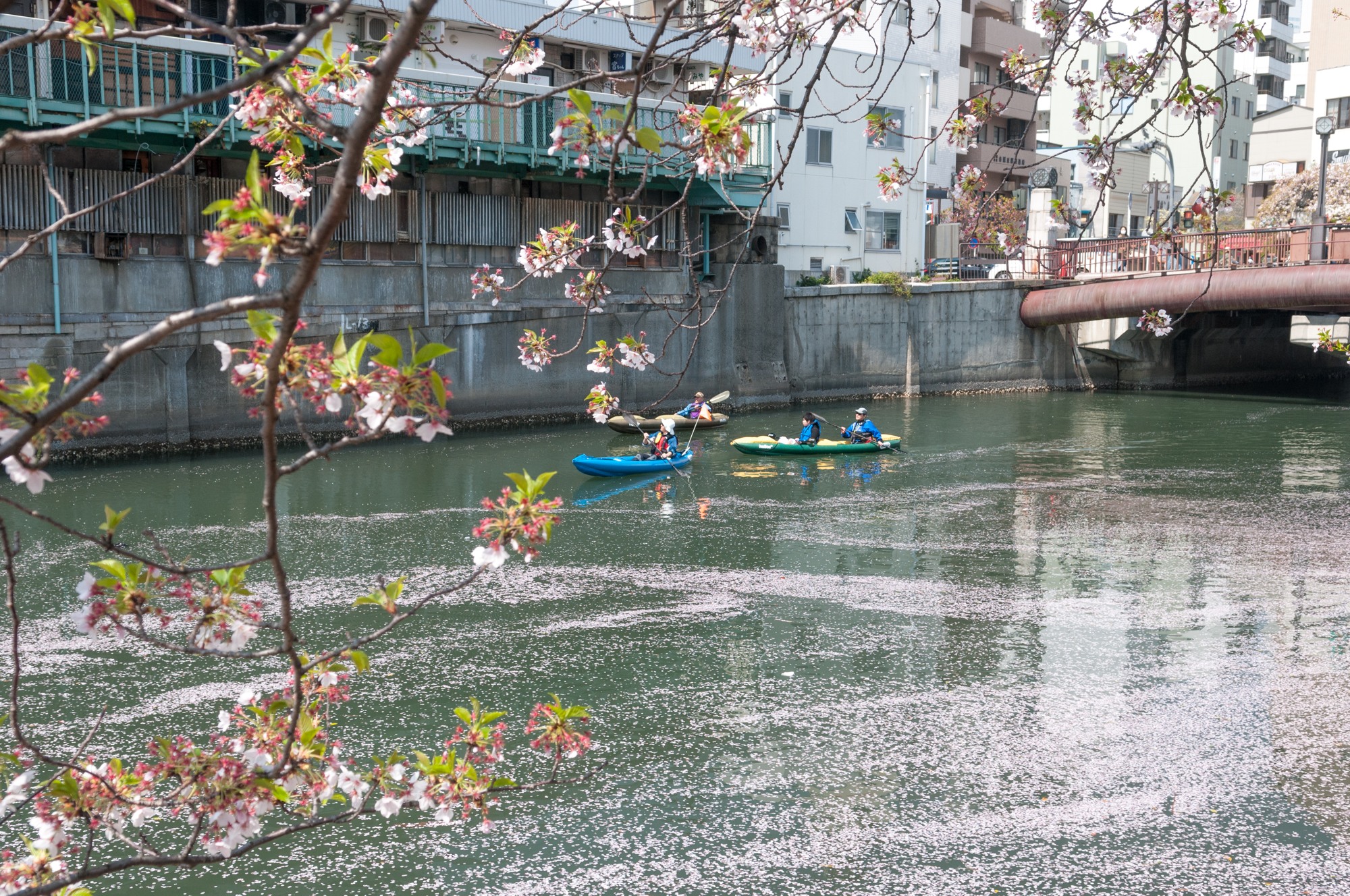その桜の花びらをかきわけながら進む観光船やカヌーのようなボートもおり、乗ったら楽しいだろうなあと思わされました。