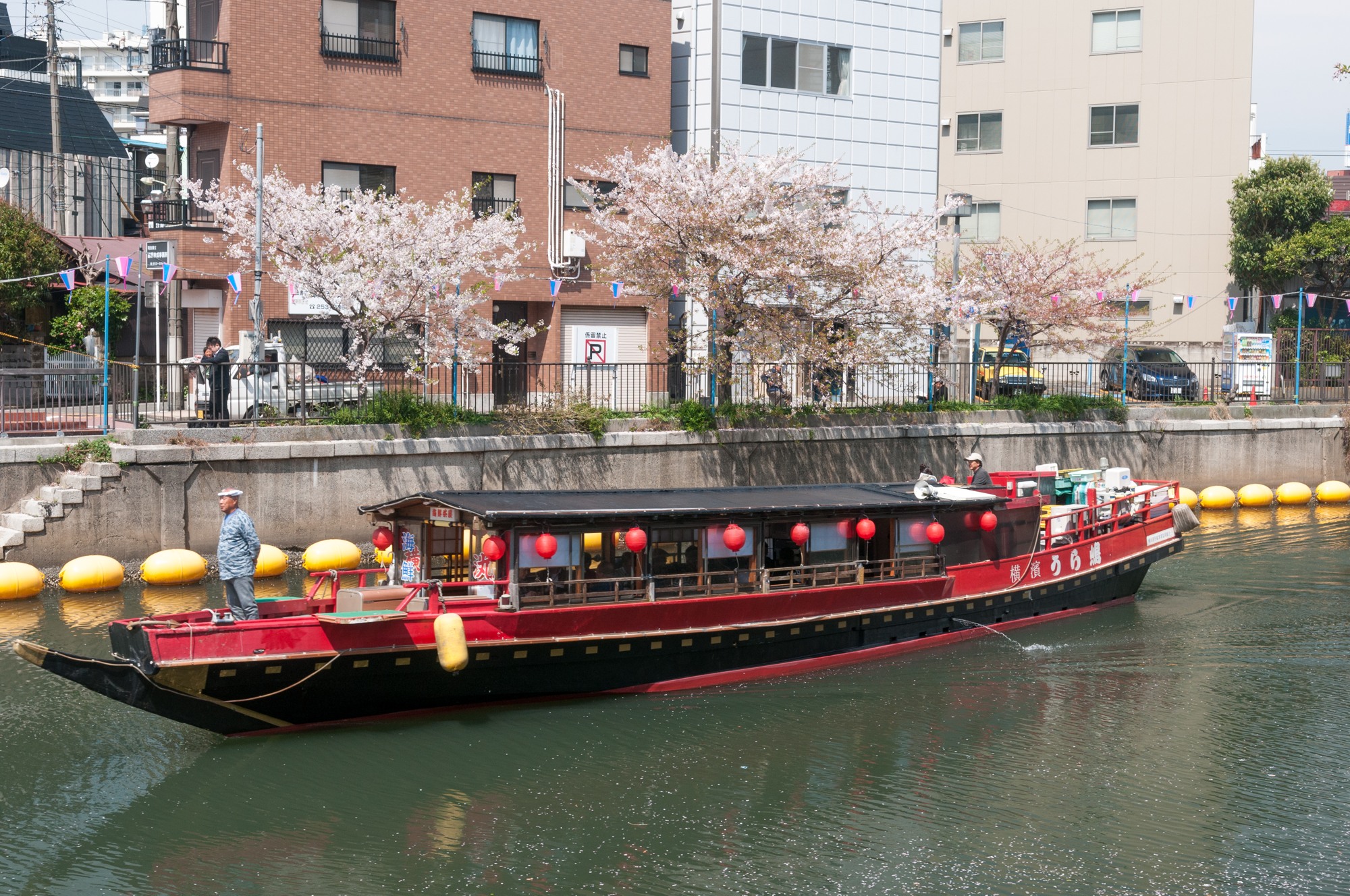 ふと反対側を見ると何と屋形船がいます。昼間からお花見しながらお酒を楽しめるのは楽しそうです。