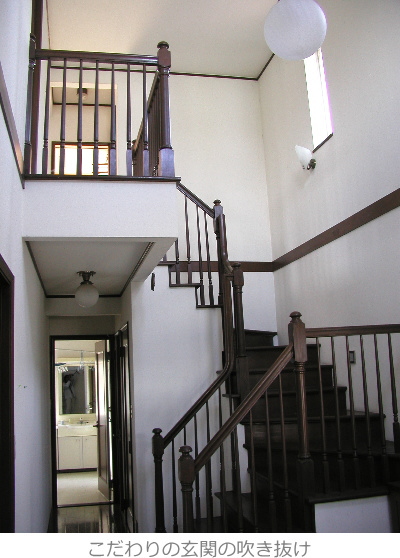 私が家の間取りを考えているときに一番こだわったのは手すりのある階段が見える大きな吹き抜けの玄関ホールですが、これも今でも飽きることはなく良い設計だったなあ、と我ながら感心してきました。