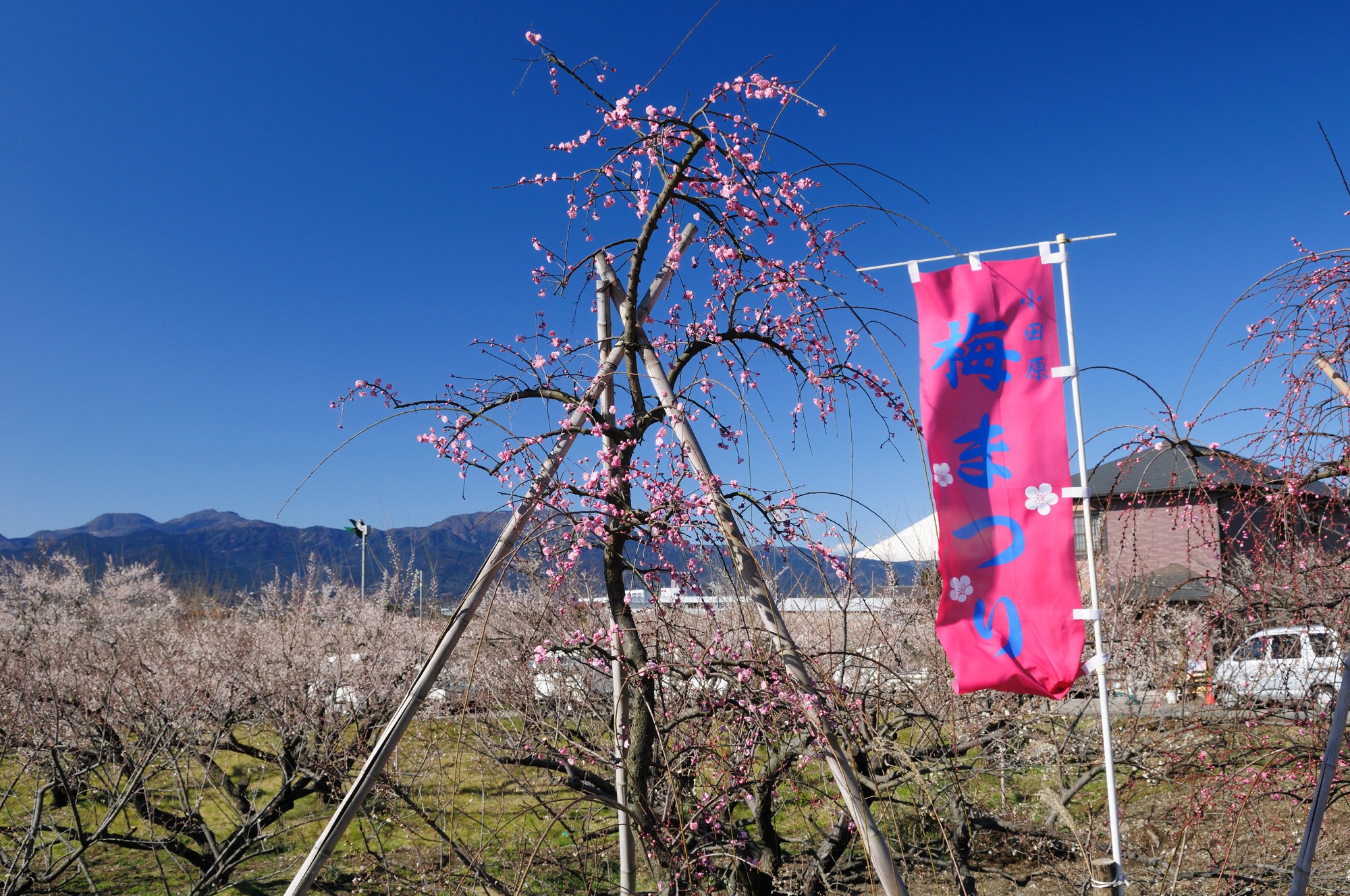良く晴れた2月の休日,梅を見たくなり出かけました。WEBで調べたら富士山の近く,小田原曽我梅林というのがあり,富士山をバックに見事な梅林があるというのを発見し,早速行ってみました。