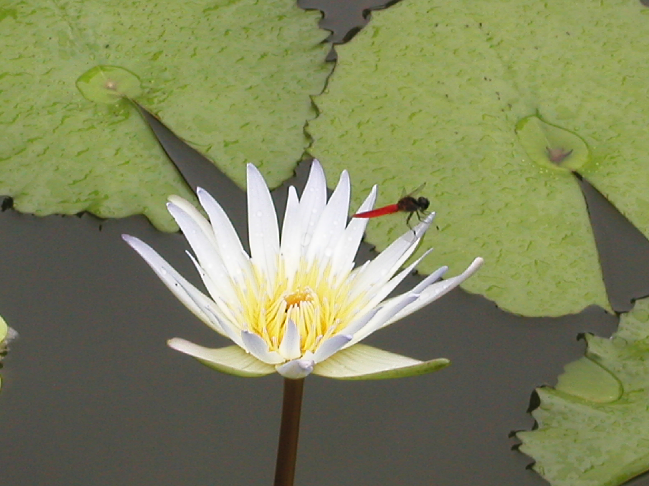 ここから少し上り坂を歩きますが、ほどなく蓮池が見えます。蓮の花なんて見るのは何年ぶりでしょうか。非常に綺麗で見とれていたら、花に赤とんぼが止まったので思わず写真をパチリです。シンガポールでは赤とんぼなんて見たことがなかったので感動でした。