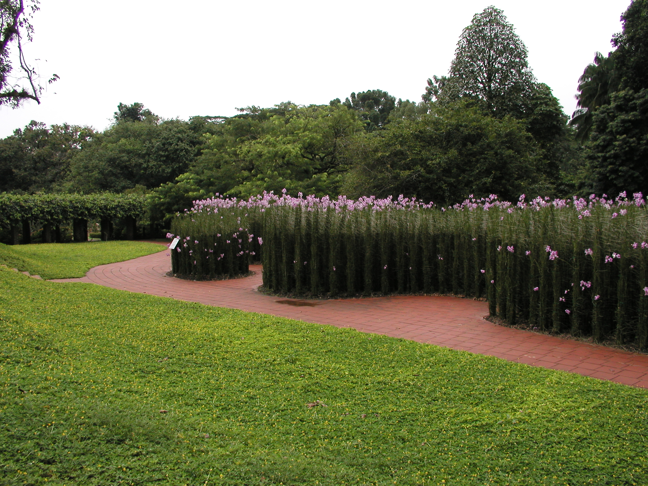 さてまた進むと今度は見事な蘭の花が咲き乱れていました。これも本当に美しい。確かこの光景は観光ガイドにも良く掲載されていたような。。。蘭の花はシンガポールの国花となっており、国中いたる所にありますが、ここでの蘭の群れはとてもゴージャスで一見の価値ありです。でも蘭の花(木?)というのは結構背が高いものであることが今回初めてわかりました。本当にこのボタニック・ガーデン、1つ1つが感動です。
