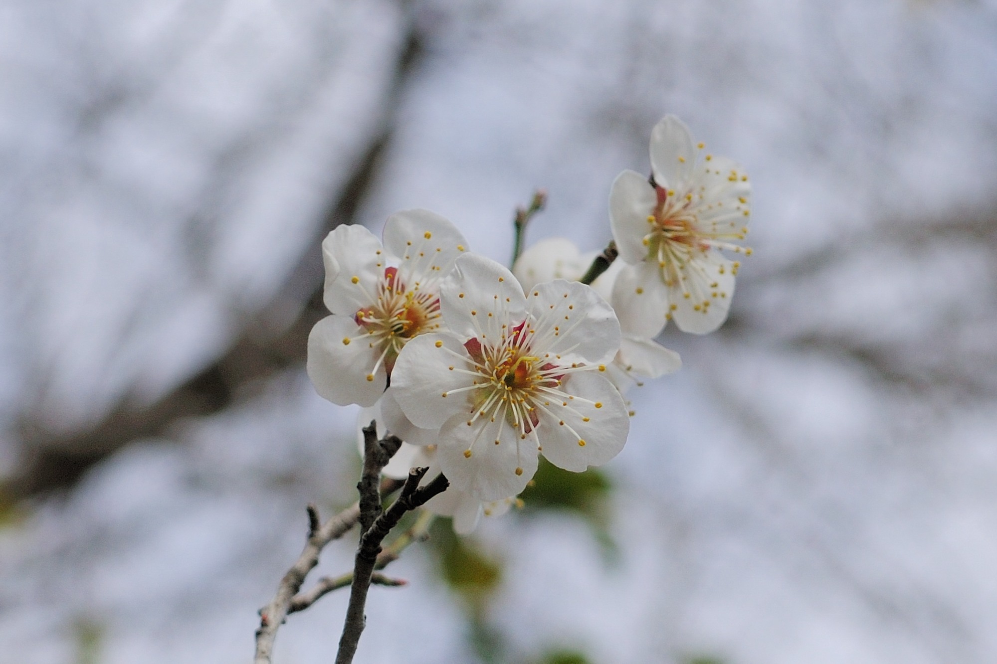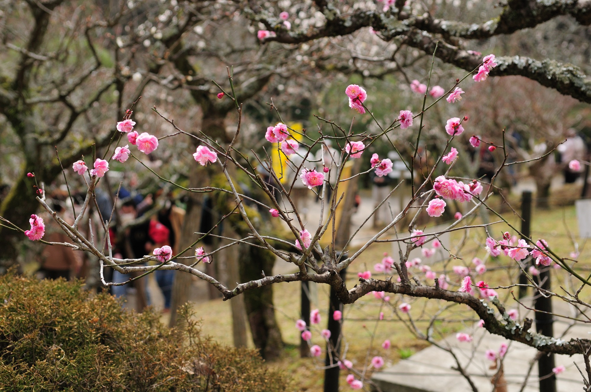 近くに寄って写真を撮ってみました。梅の花を近くで見るのは,実はほとんど初めてですが,意外と綺麗な花です。感動しつつ何枚か写真を撮りましたが,周囲にも同じように一眼レフで写真を撮っている人がたくさんいました。
