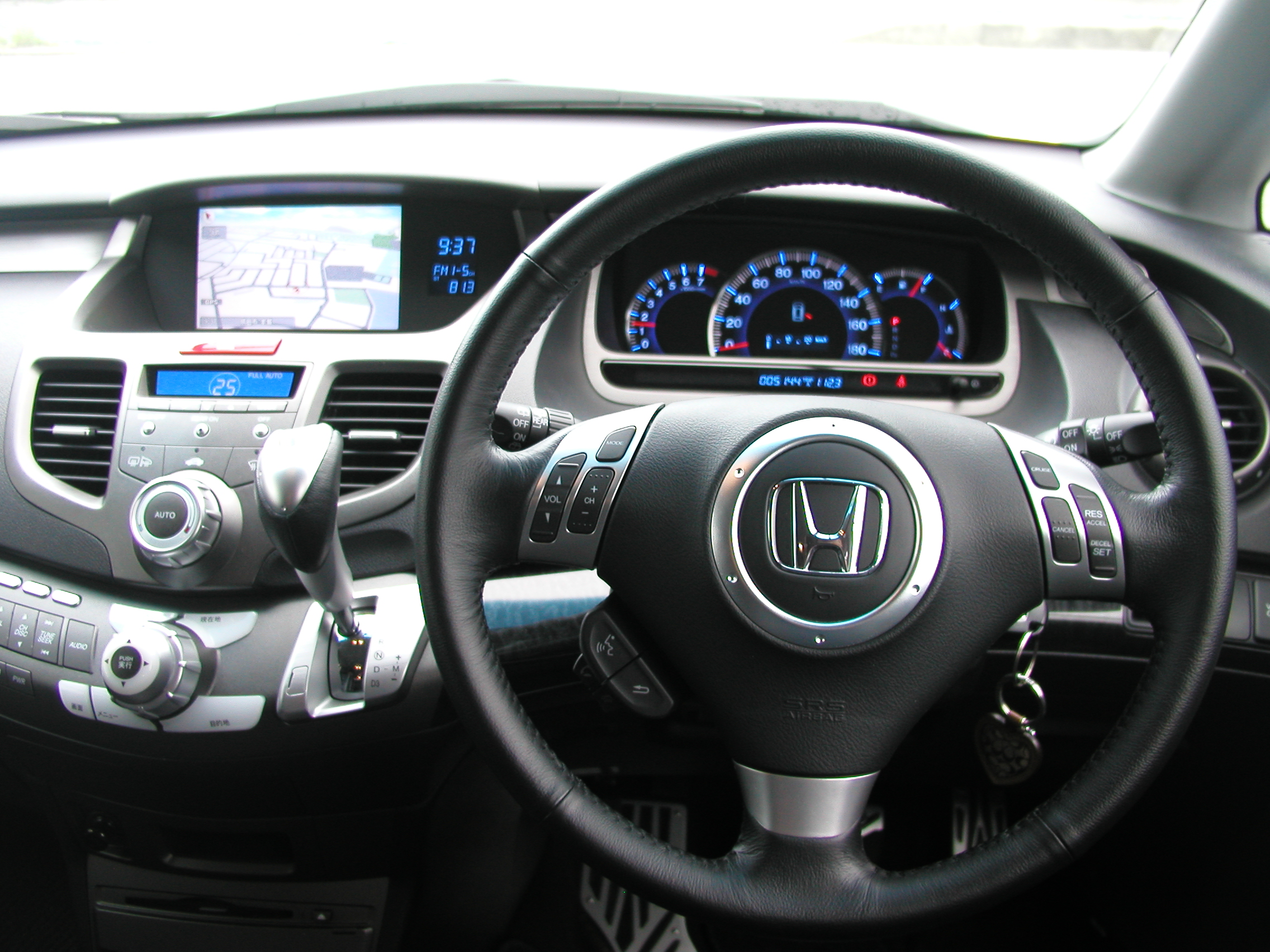 車重が重いので以前乗っていたスカイライン・ターボのようなロケット並みの加速感はありませんが、流石は i-VTEC の200馬力エンジン、ちょっとアクセルを踏み込むと実に気持ちよく「ギュイ~ンンンン・・・」と加速してくれます。サウンドも良く、回転が上がるにつれていい音を出してくれます。高速走行でも余裕の固まりという感じなので全くストレスを感じることはありません。バックミラーに写るフロントマスクも迫力あるのでしょう、高速道路で前の車に追いつくと、黙っても道をあけてもらえます。