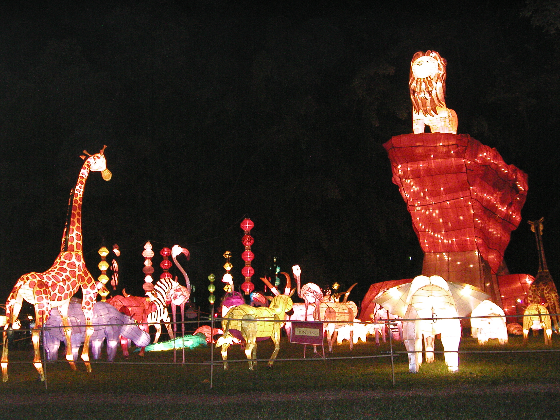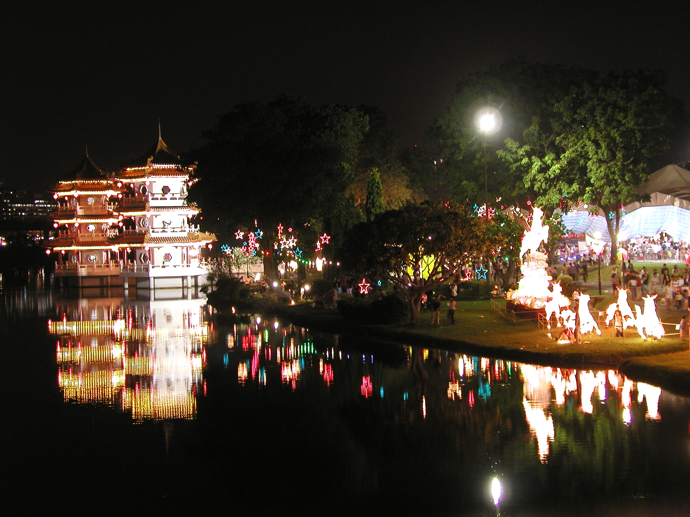 ランタン・フェスティバルとは中秋の名月の頃に中国庭園で行なわれる「灯篭流し」に似たお祭りです。と言っても実際に灯篭流しをするのではなく、ライトアップされた張子をたくさん飾っていました。