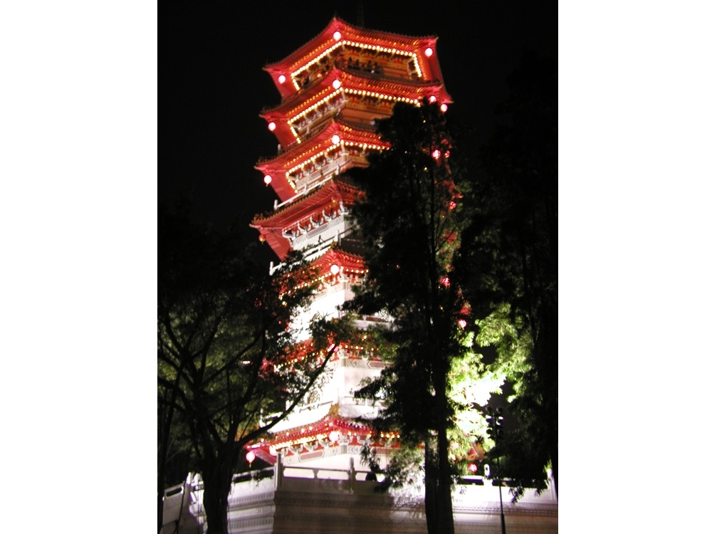 奥に歩くと五重塔(七重?)がライトアップされていました。
