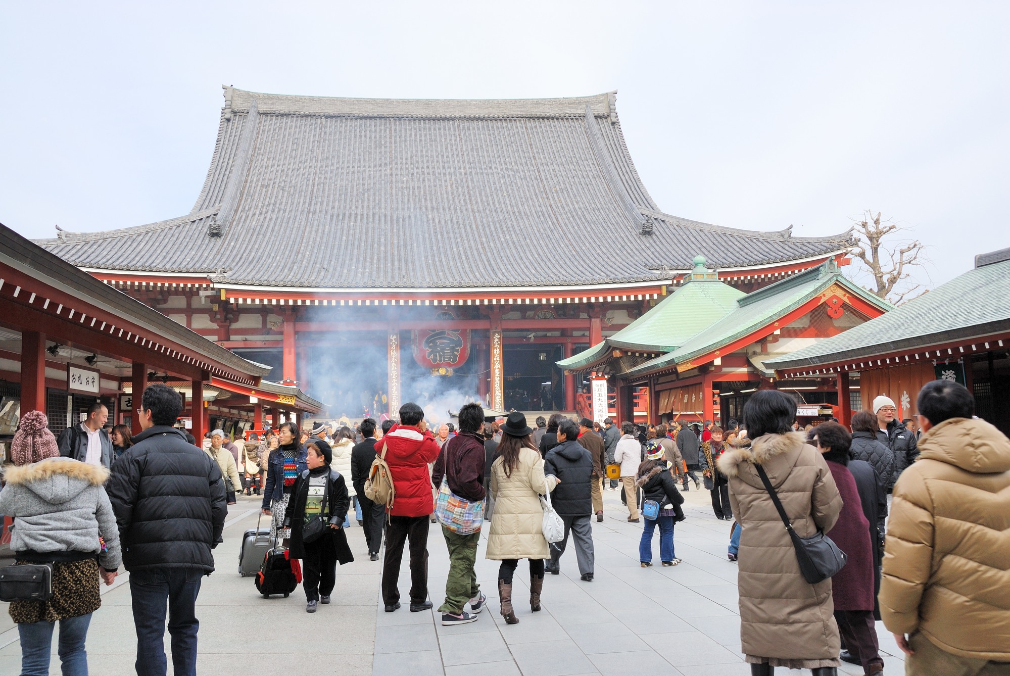 浅草寺の境内もすごい人ごみ。とにかくどこもかしこも大混雑です。