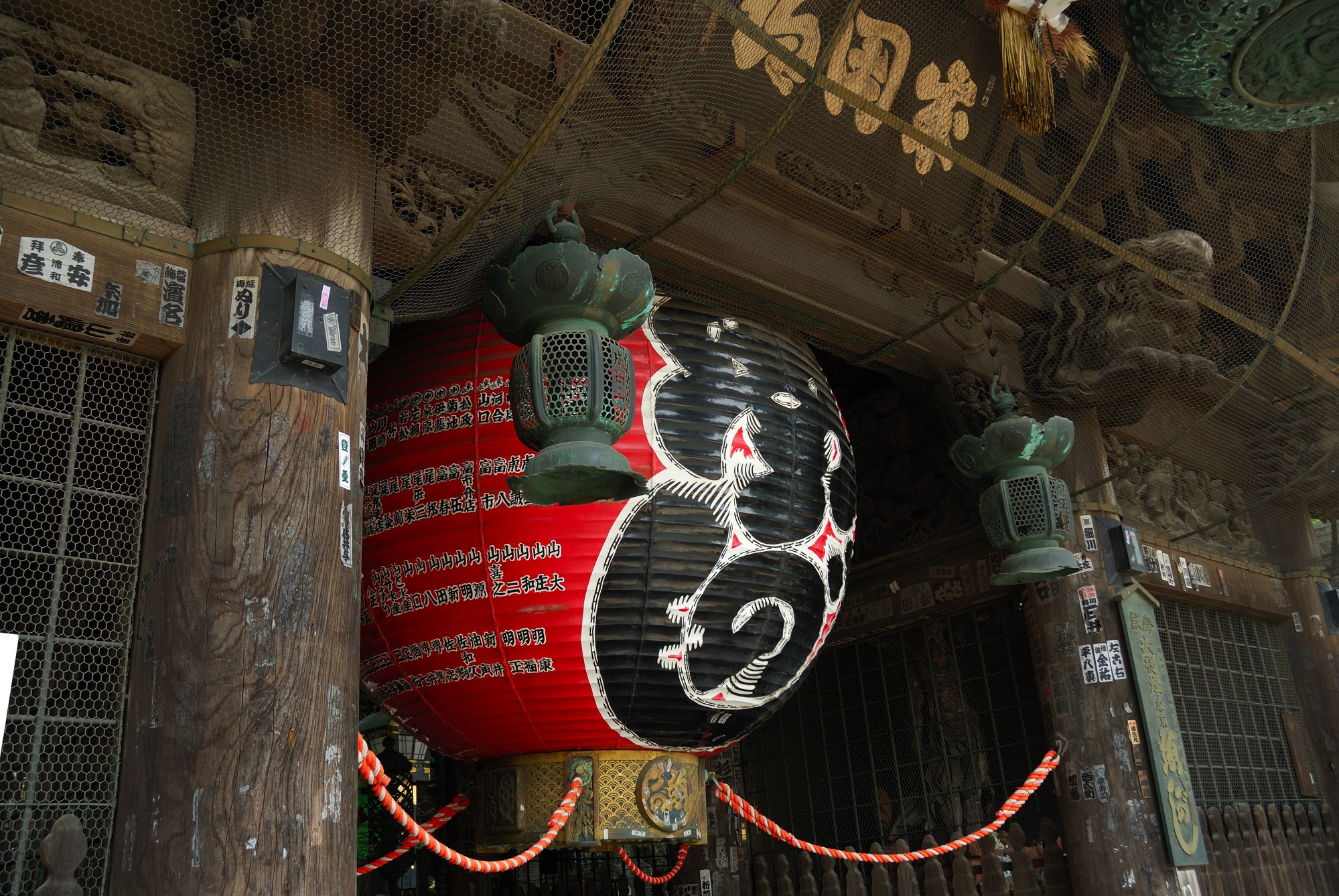成田山は今年、あちこち改修していますので、見れない所も結構あります。しかし山門は手付かずなので見ることが出来ました。この山門、二王門と言いますが、真ん中に大きな提灯がぶら下がっています。