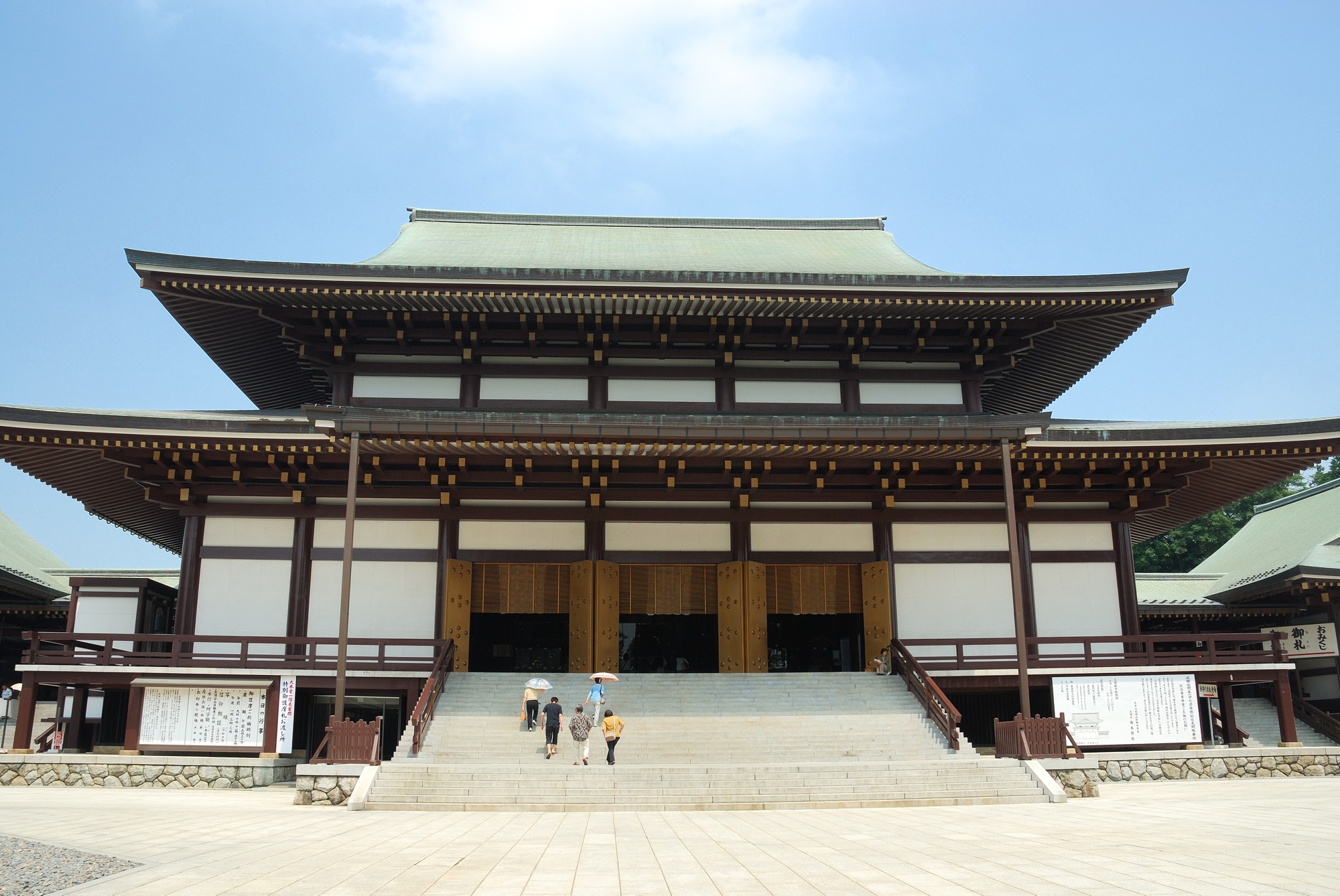 左にはお札売り場が、右には綺麗な三重塔があり、正面には成田山の大本堂が堂々と建っています。