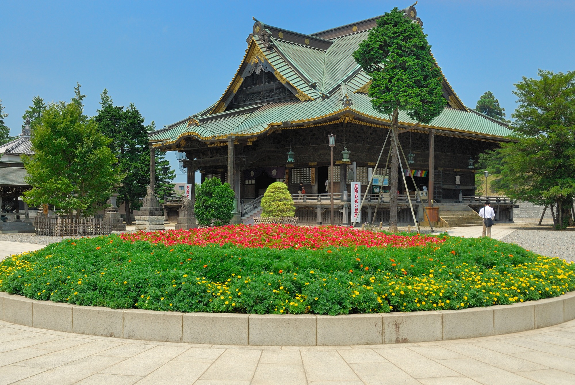 さて大本堂に向かって左に歩くと釈迦堂というのがあります。この手前には丸い綺麗な花壇があり、なかなかの眺めです。