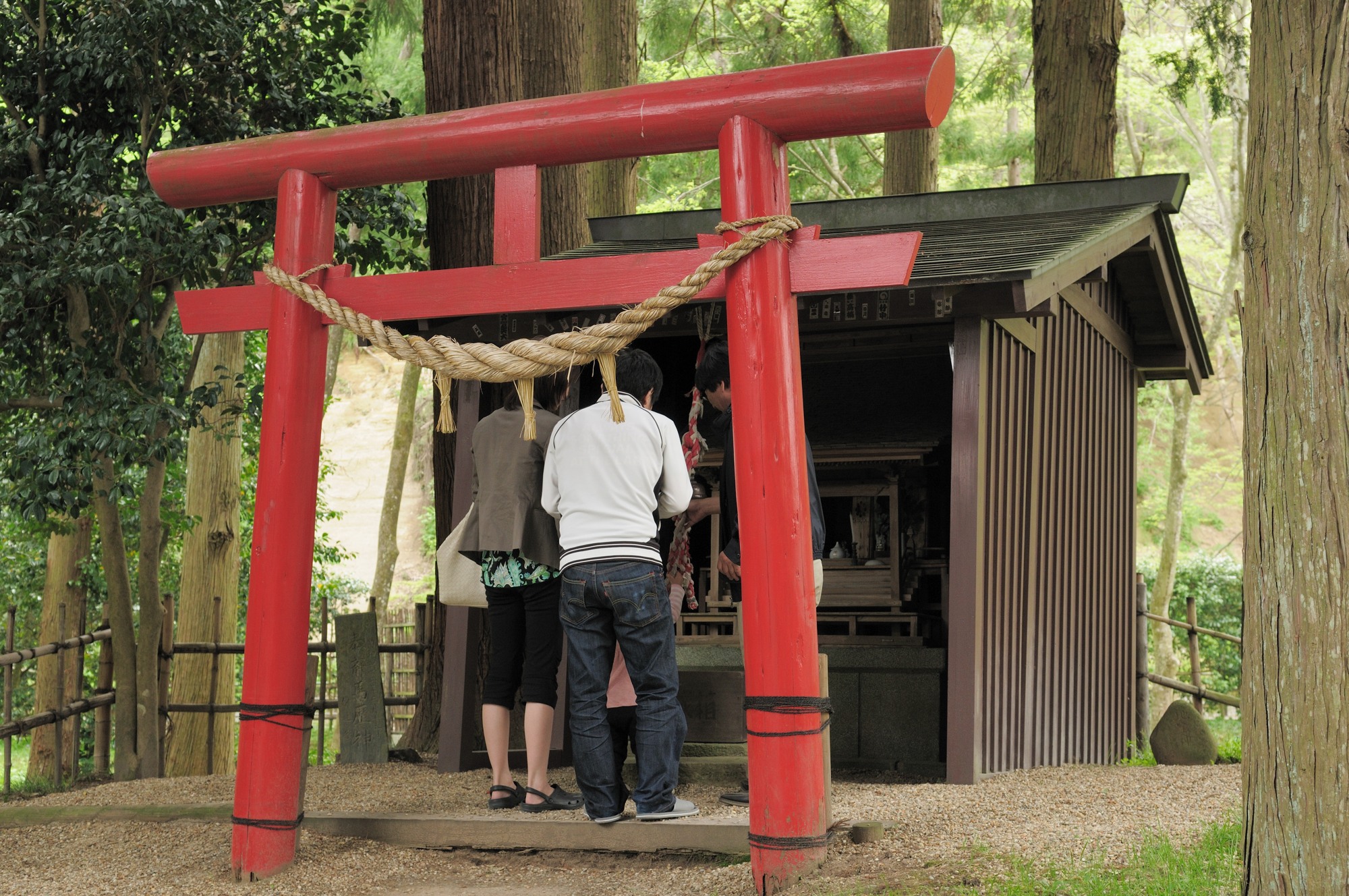主屋の前には大きな池が広がっており、お約束の鯉もたくさん泳いでいます。池の周りは遊歩道になっています。ここをのんびりゆっくり歩くと、空気もうまく自然の中を歩いている感じがして、とても気持ちがいいです。少し奥まで歩くと小さな祠があります。